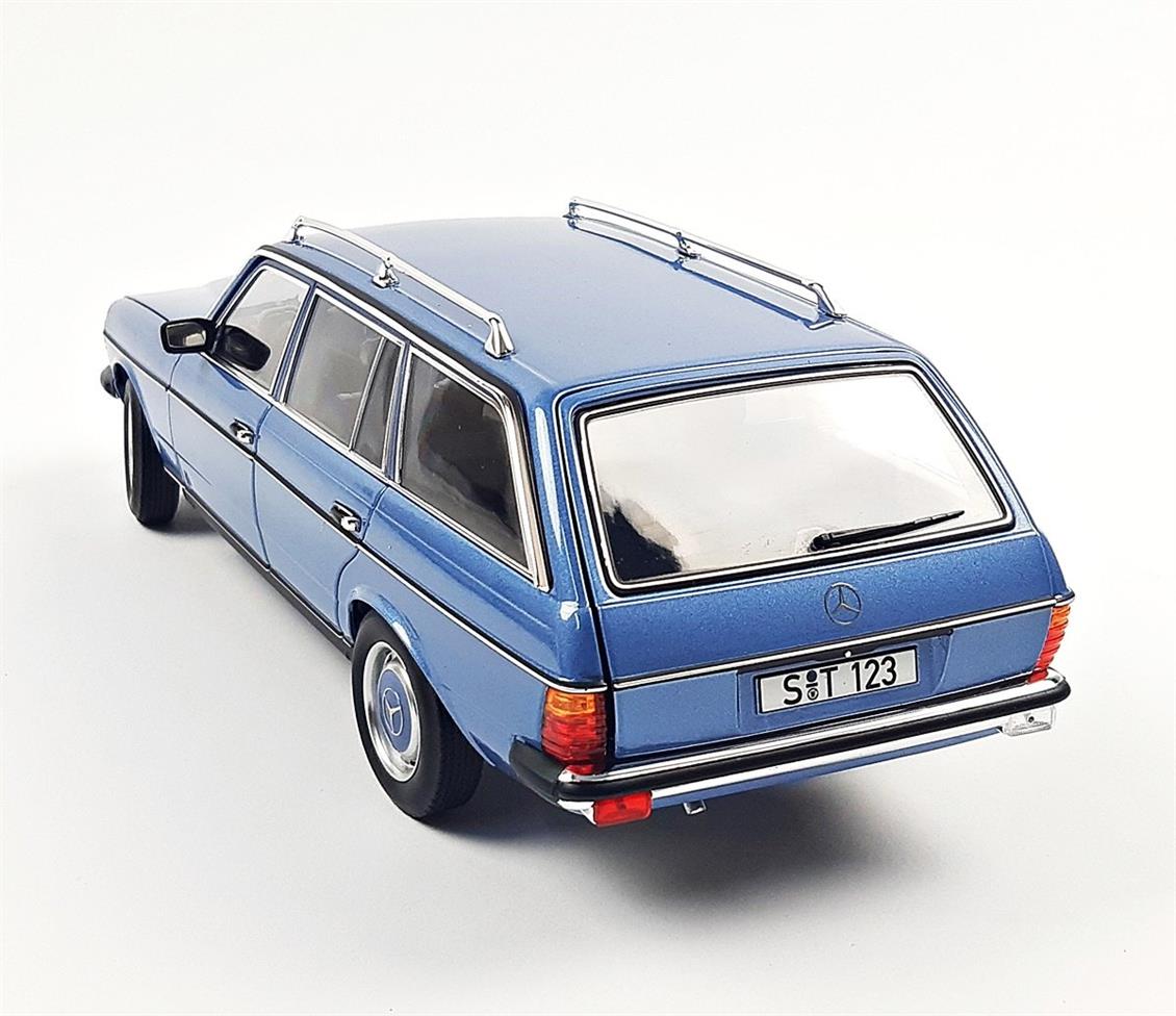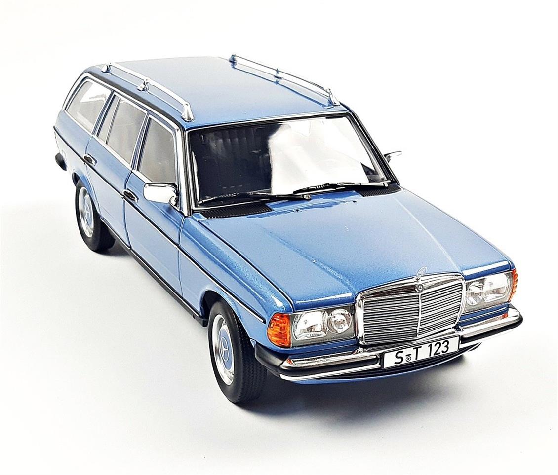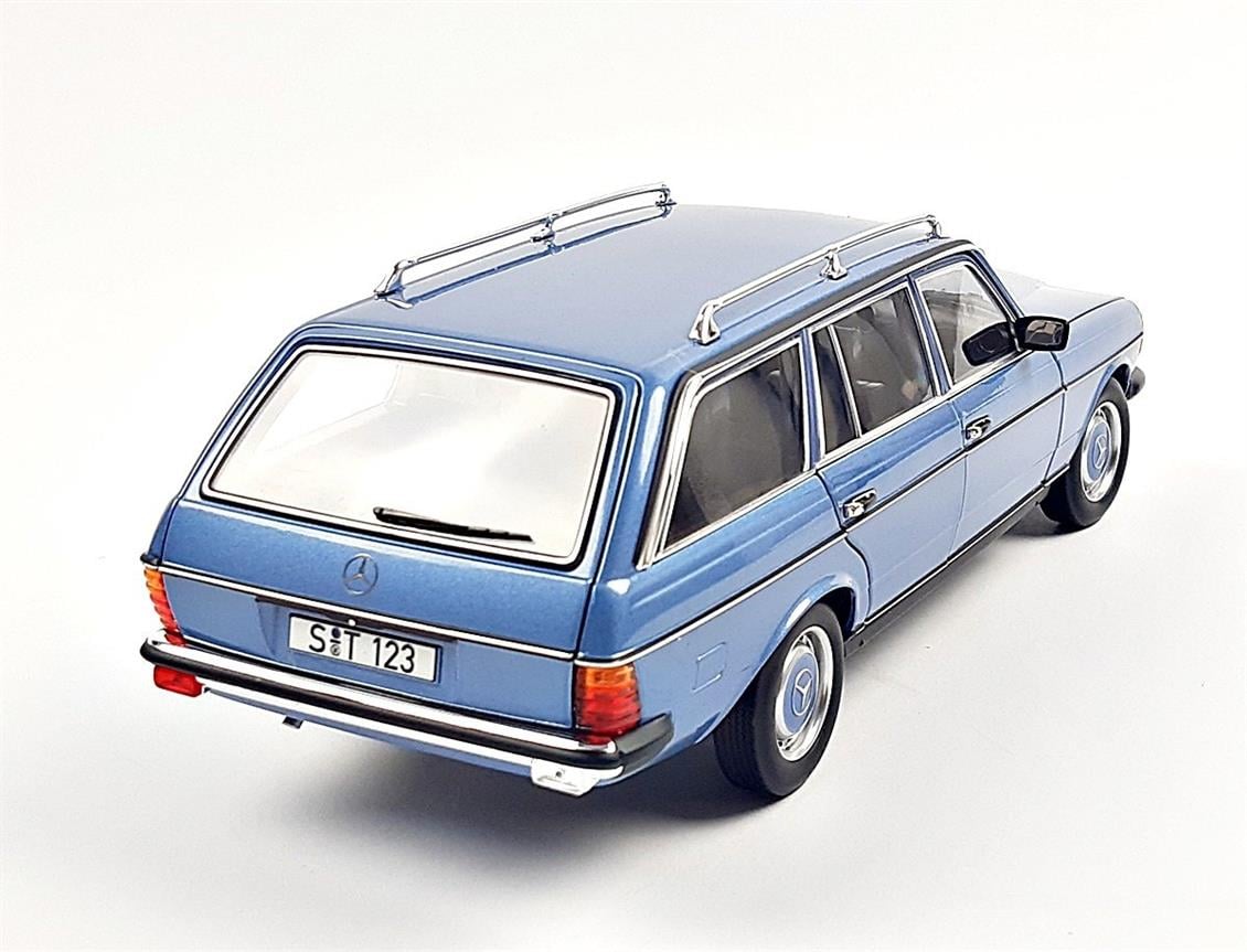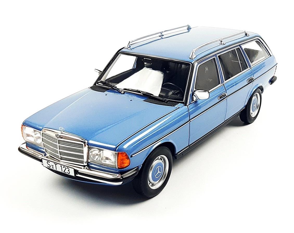 Norev B66040671 1/18 Mercedes Benz E Klasse 200 TE Station Wagon T-Model (W123) 1982, Diamond Blue, bereit, Metallauto-Modell auszustellen