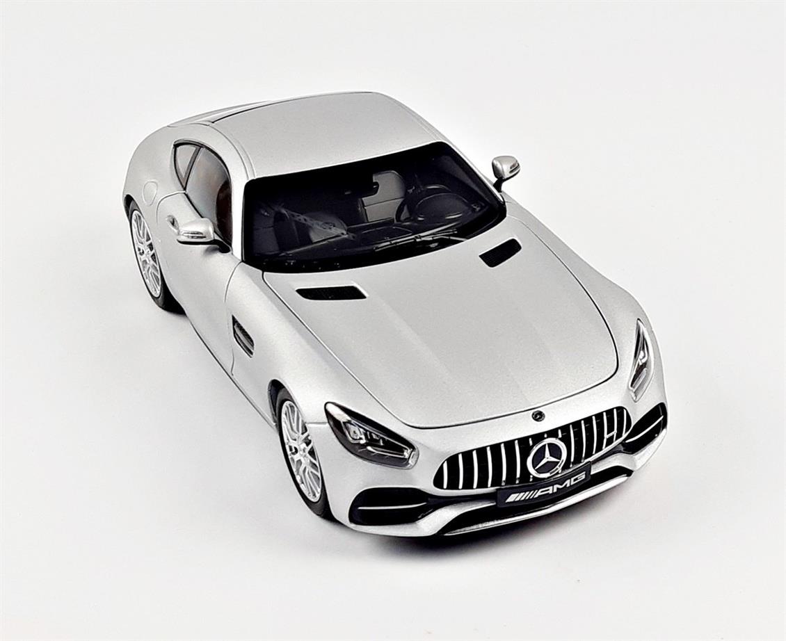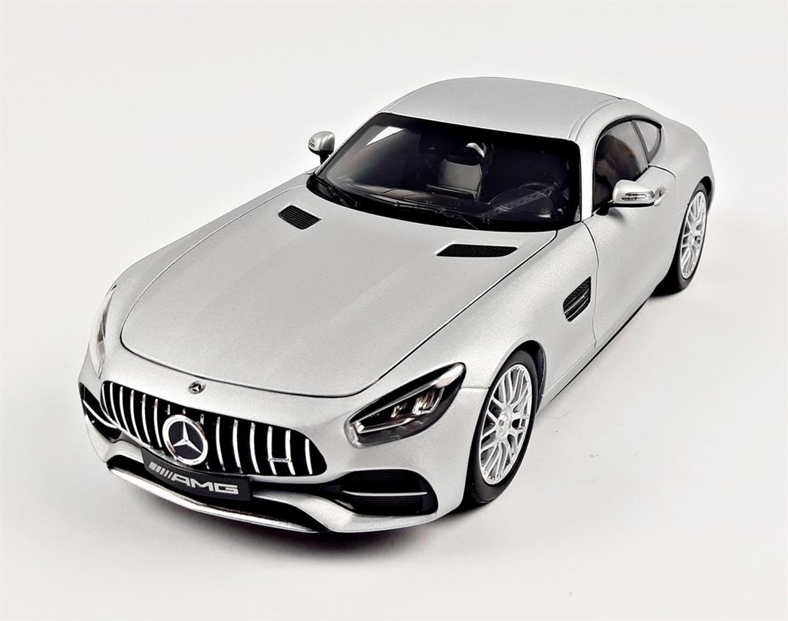 Norev B66960485 1/18 Mercedes Benz GT S AMG V8 Biturbo (C190) 2019, Iriium Silber, bereit für die Ausstellung von Metallauto -Modellmodell