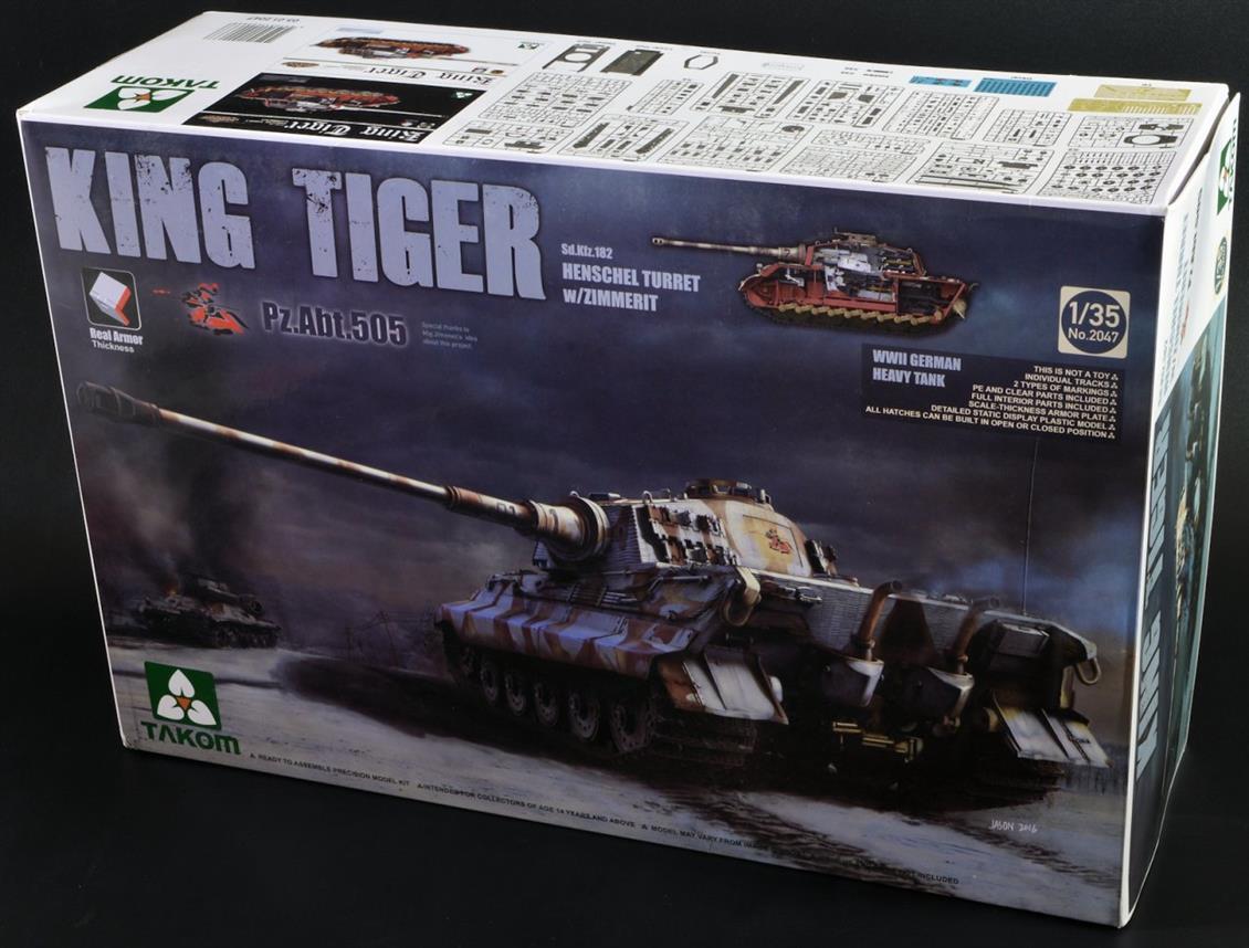 Der König Tiger, einer der schweren Panzer, die von den Deutschen gegen Ende des Zweiten Weltkriegs produziert werden, ist einer der detailliertesten Kits des Panzers und eines der detaillierten Takom -Kits mit Innenausstattung.
