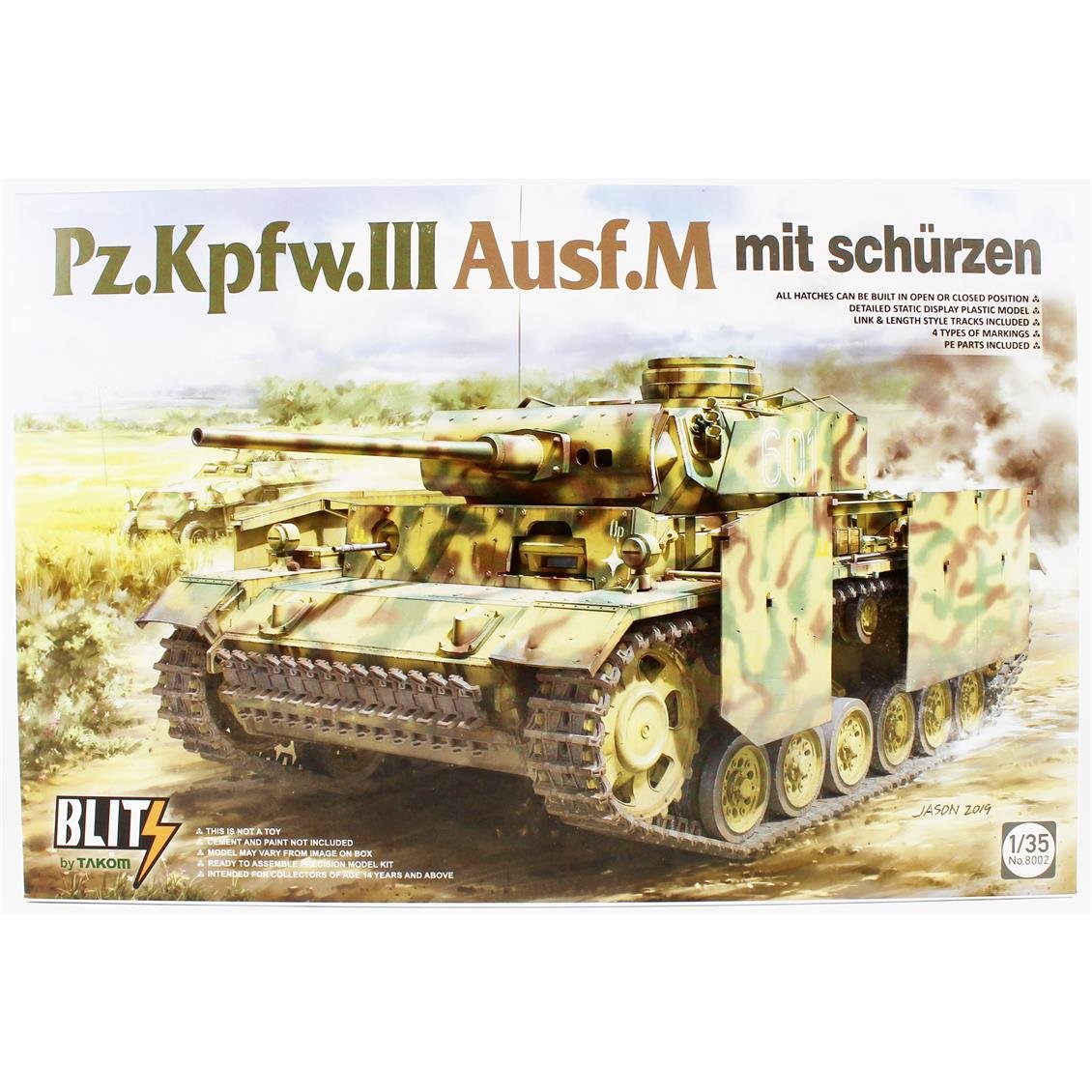 Takom 8002 1/35 Skala, Deutscher Mittler Tank Schürzen gepanzerter Panzer III (Version M), Kunststoffmodell -Kiti