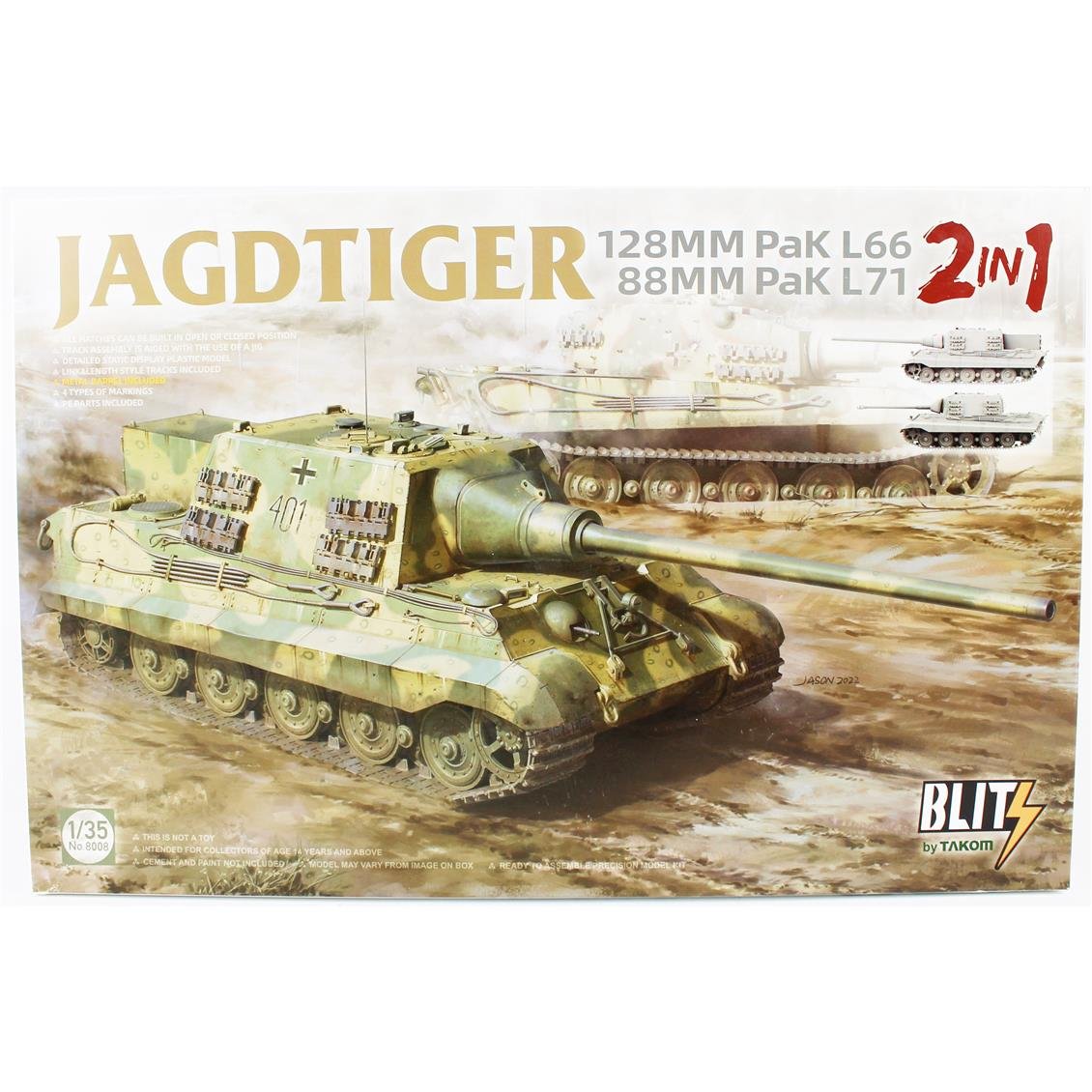 Takom 8008 1/35 Skala, Jagdi 128 mm Pak L66 Tank, (2 in 1), Kunststoffmodell -Kiti
