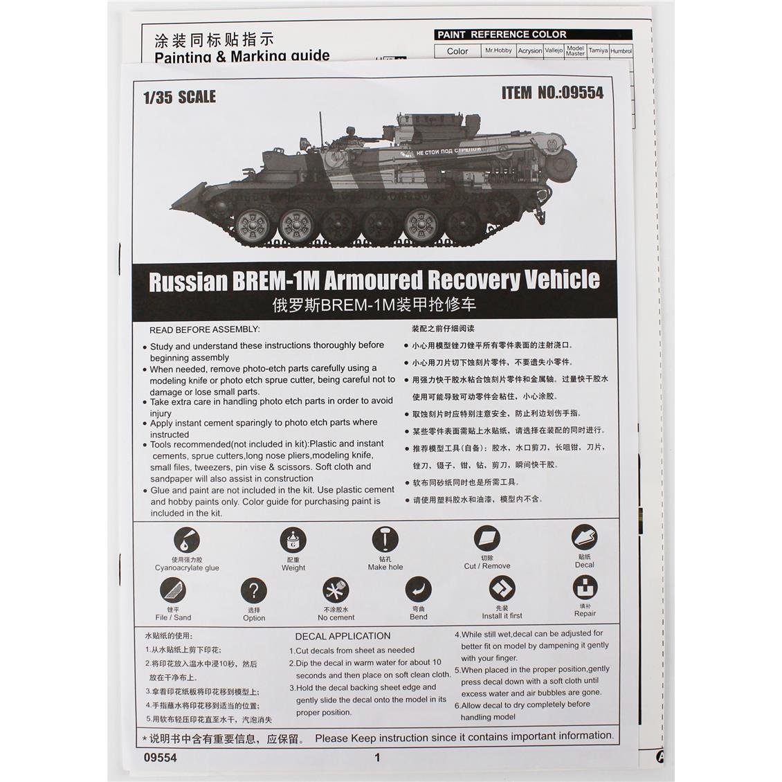 Trompter 09554 1/35 Skala Russisches BREM-1M Panzerer Wiederherstellungstool, Kunststoffmodell-Kit