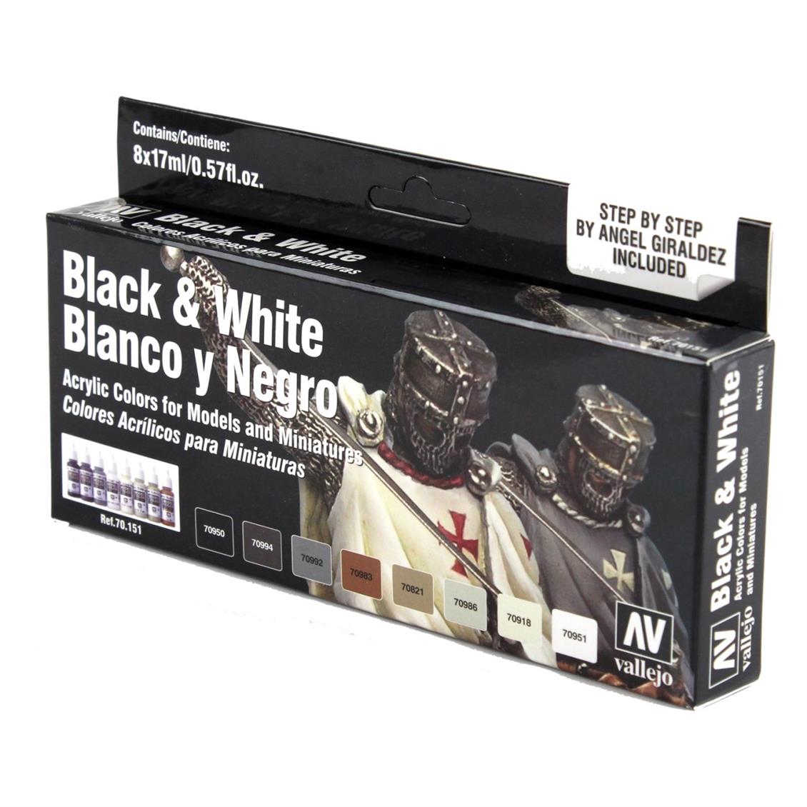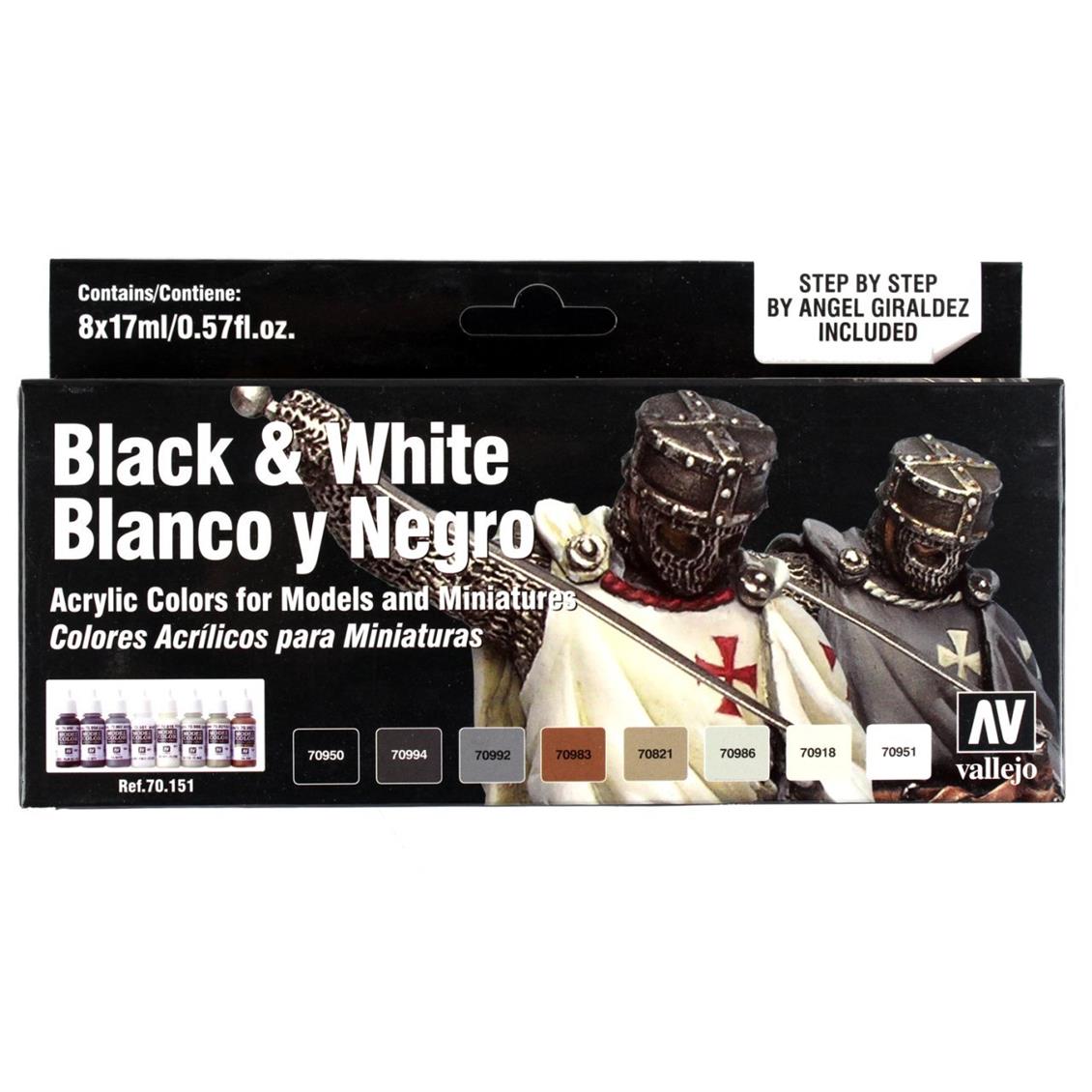 Vallejo 70151 8x17 ml. Black & White (8) von Angel Giraldez, Modellfarbe -Modell -Modellmalerei