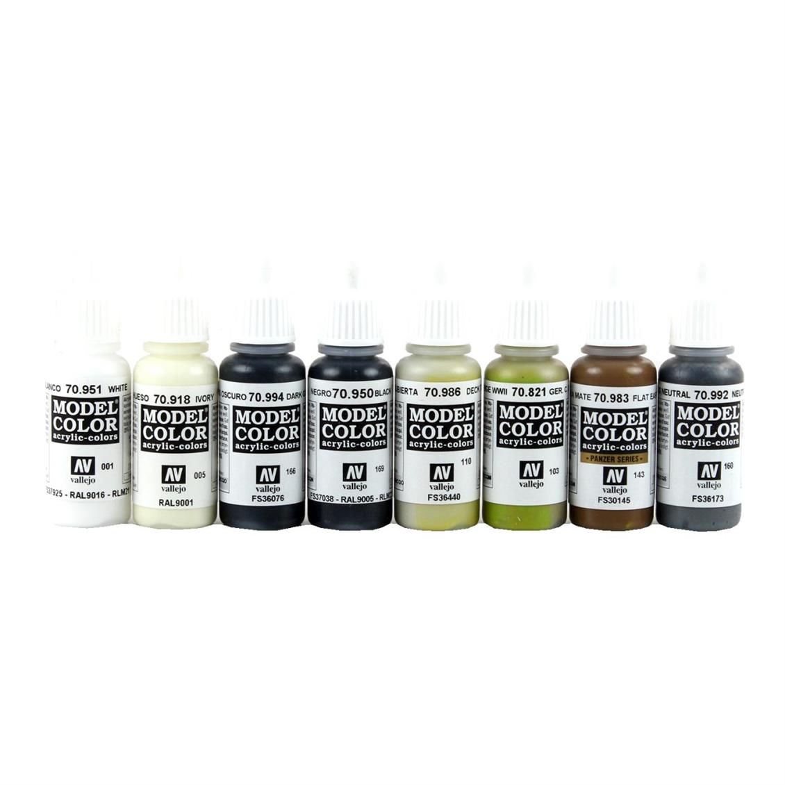 Marke:Vallejo Aktienkodex:VA70151 Skala:17ml. Typ:Lack -Set Anzahl der Teile:8 Material:Basis von Acrylwasser