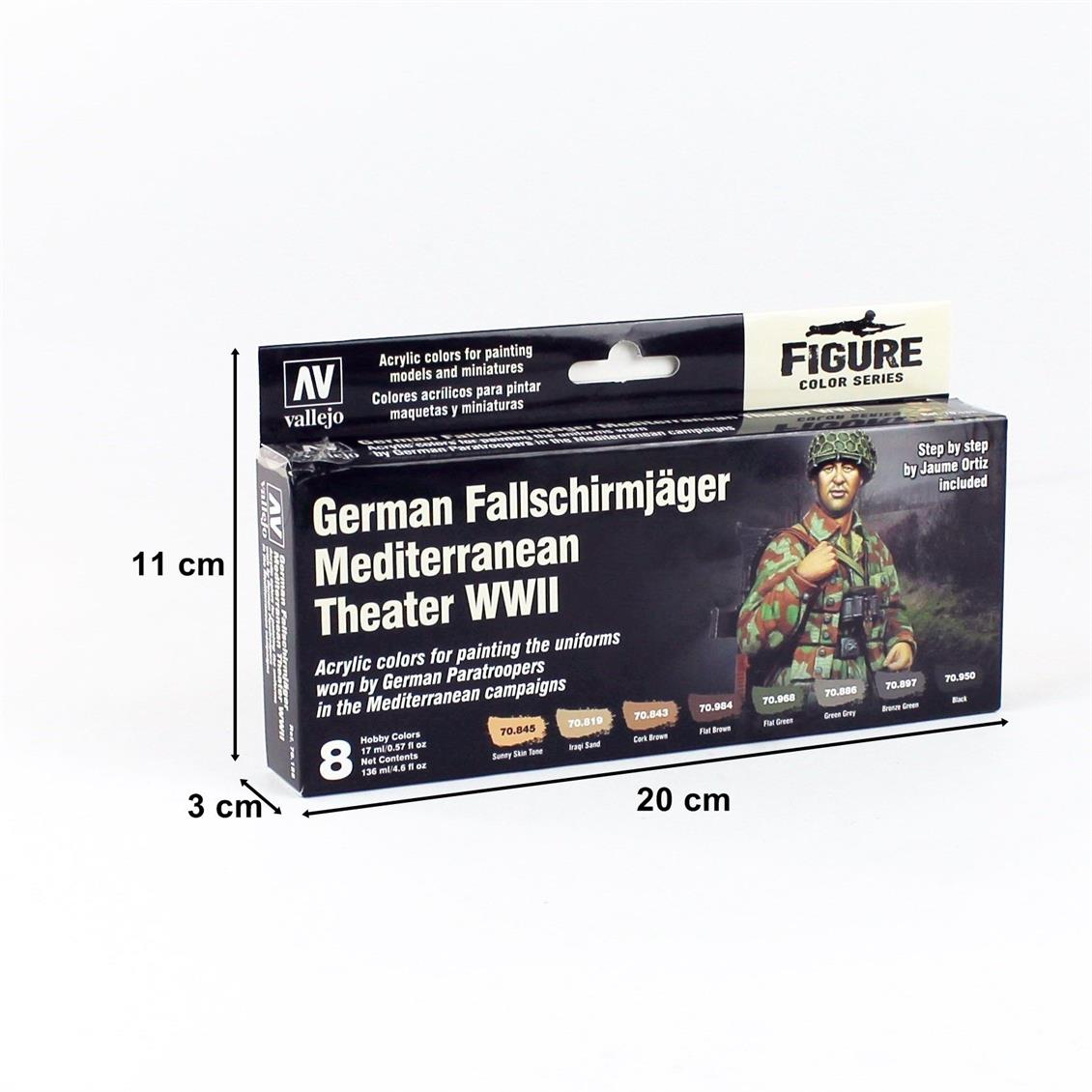 Vallejo 70188 8x17 ml. Deutsches Fallschirmjäger Mediterraner Theatre im Zweiten Weltkrieg, von Jaumen Ortiz, Modellfarbe Modellfarbe
