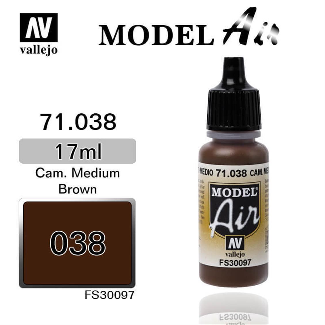 Vallejo 71038 17 ml. Camouflage Medium Brown, Model Air Series Modellfarbe