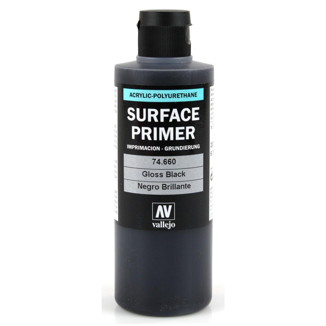 Vallejo 74660 200 ml. Gloss Black Primer, Primer -Modellmalerei