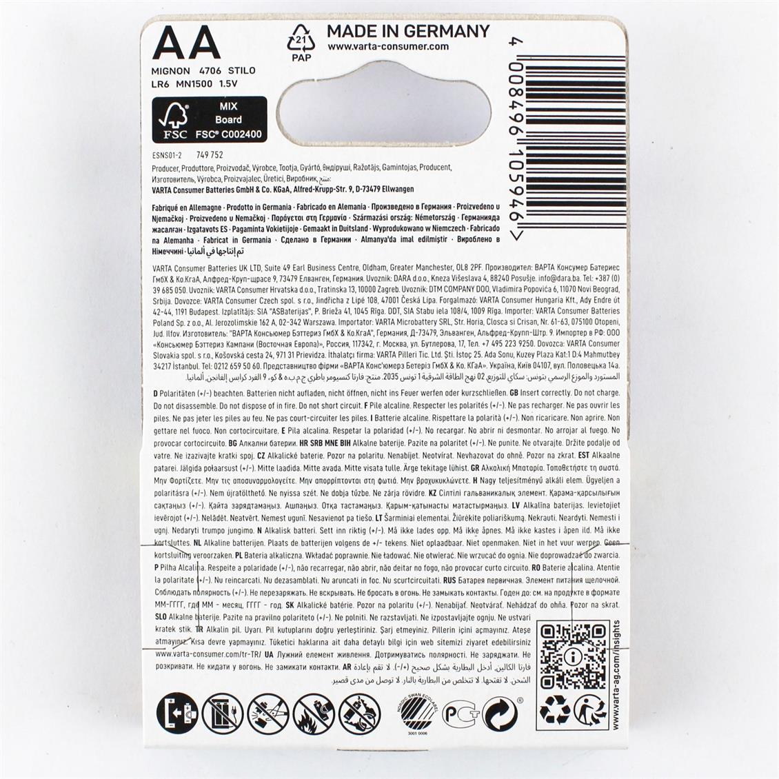Varda 4706 AA Stift Akku, LongLife Max Power Alkaline, 4 Stücke