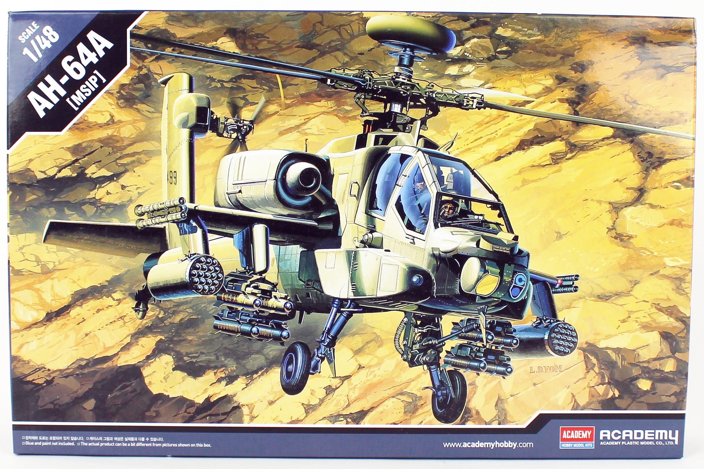 Academy 12262 1/48 AH-64A APACHE HELICOPTER DEMonte Plastic Model