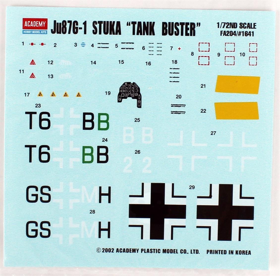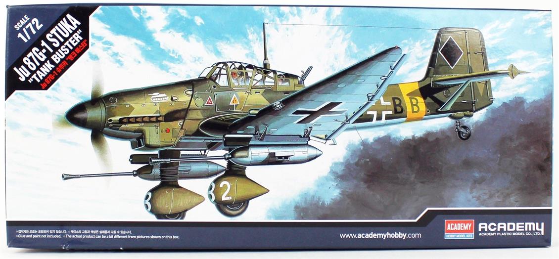 Academy 12450 1/72 Junkers Ju-87 G Stuka (Tank Hunter) Fighter plane Dismasted Plastic Model