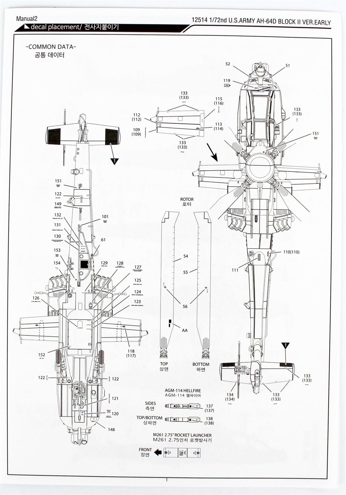 Academy 12514 1/72 AH-64D Block II Helicopter Disassembled Plastic Model