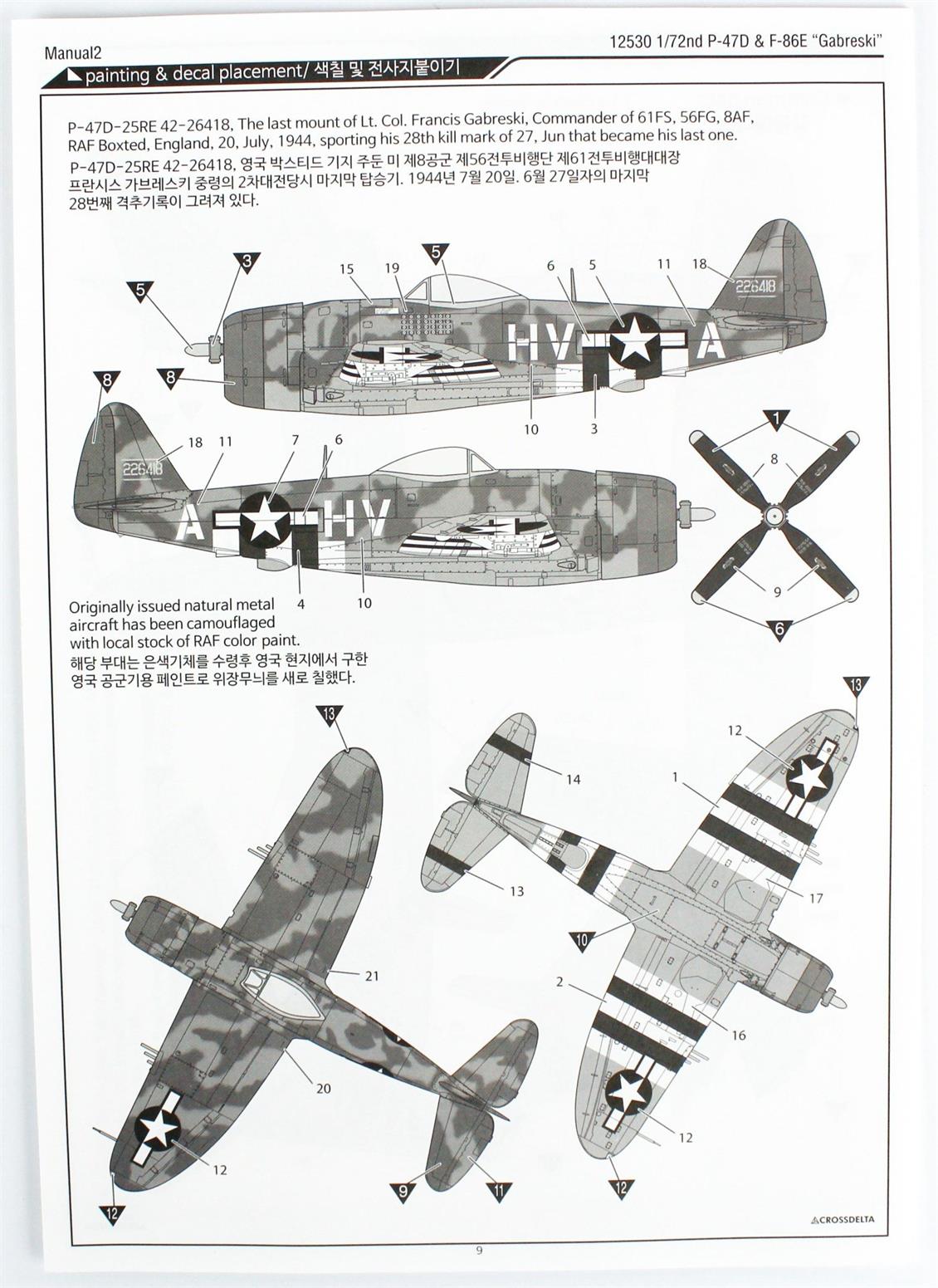 Academy 12530 1/72 P-47D & F-86E (Gabreski) Le fighter plane disassembled plastic model set