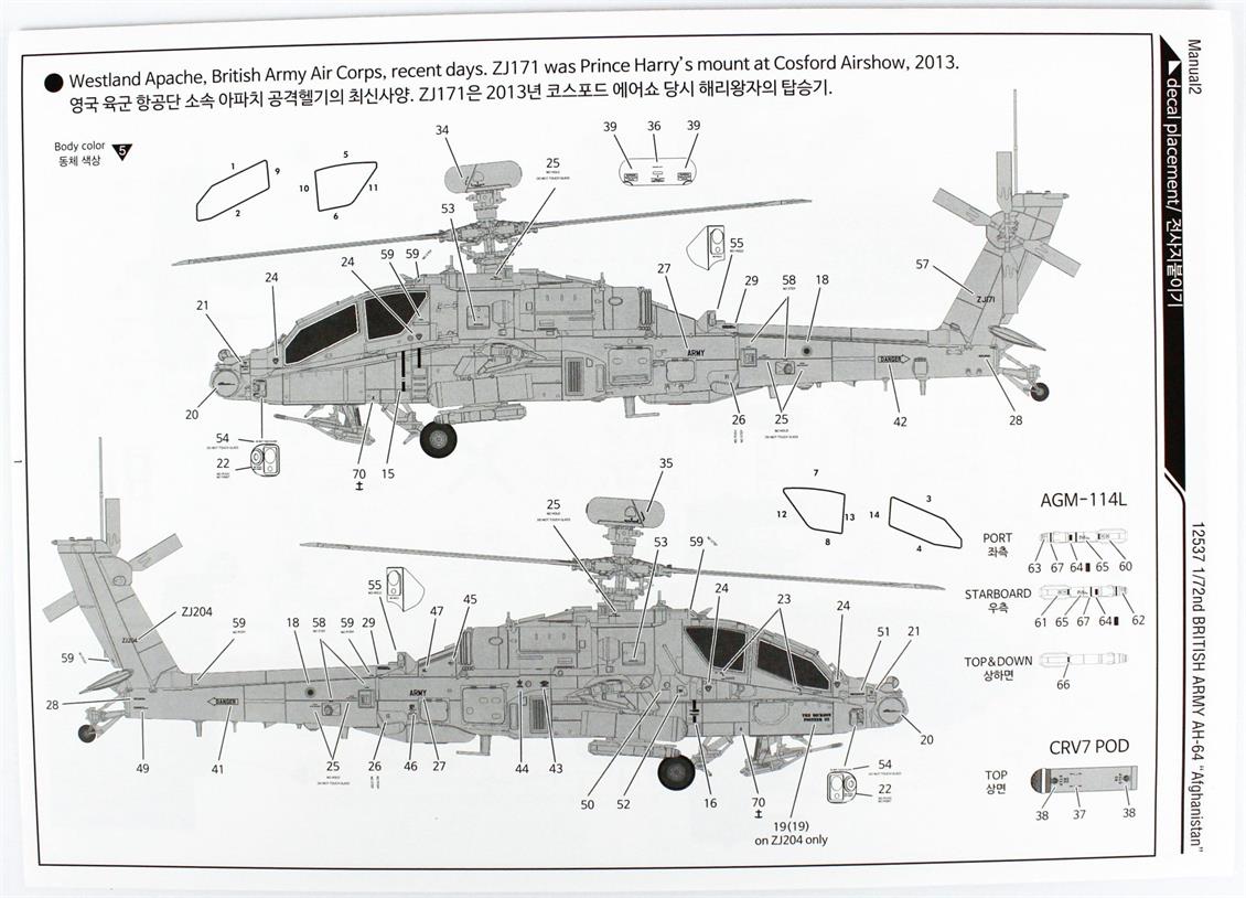 Academy 12537 1/72 AH-64D Royal Army (Afghanistan) helicopter disassembled plastic model