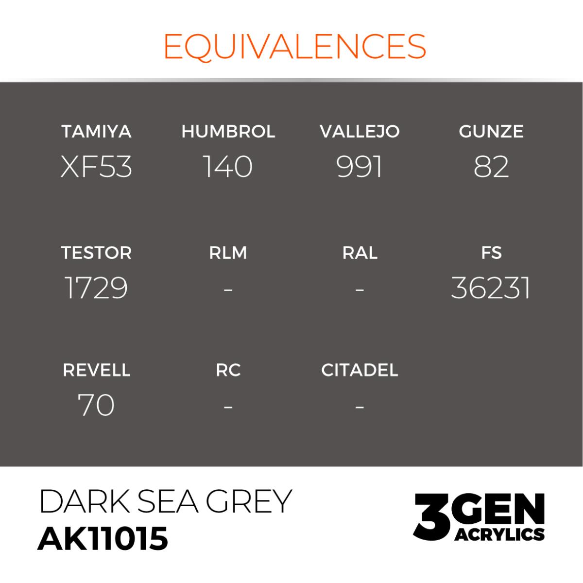 AK 11015 17 ml. Dark Sea Gray, 3GEN Acrylic Model Paint product has hobby uses and benefits for modelers. Thanks to this product, you can create detailed and colorful details that bring life to the models. You can also make your models more realistic with acrylic paints.