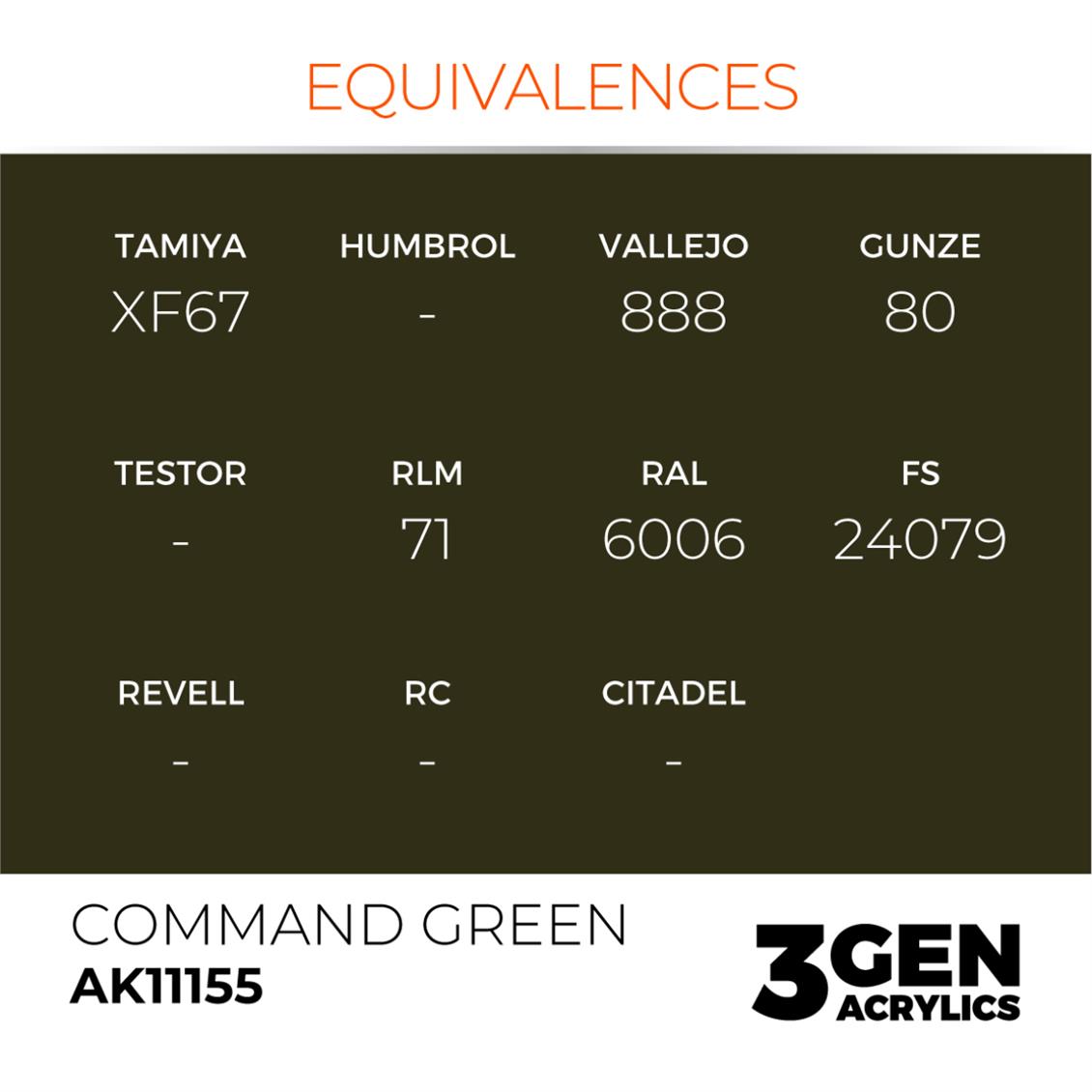 AK 11155 17 ml. Command Green, 3GEN Acrylic Model Paint.