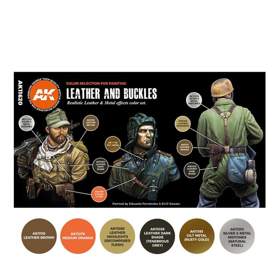 Ak Interactive 11620 6x17 ml. Leather, buckle and shoe shoes, acrylic model paint set