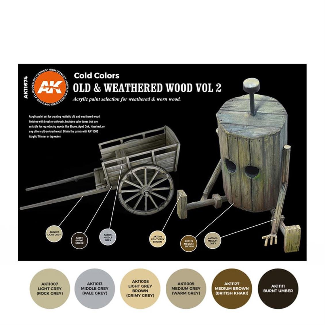 Ak Interactive 11674 6x17 ml. Old and worn wooden colors-b, acrylic model paint set