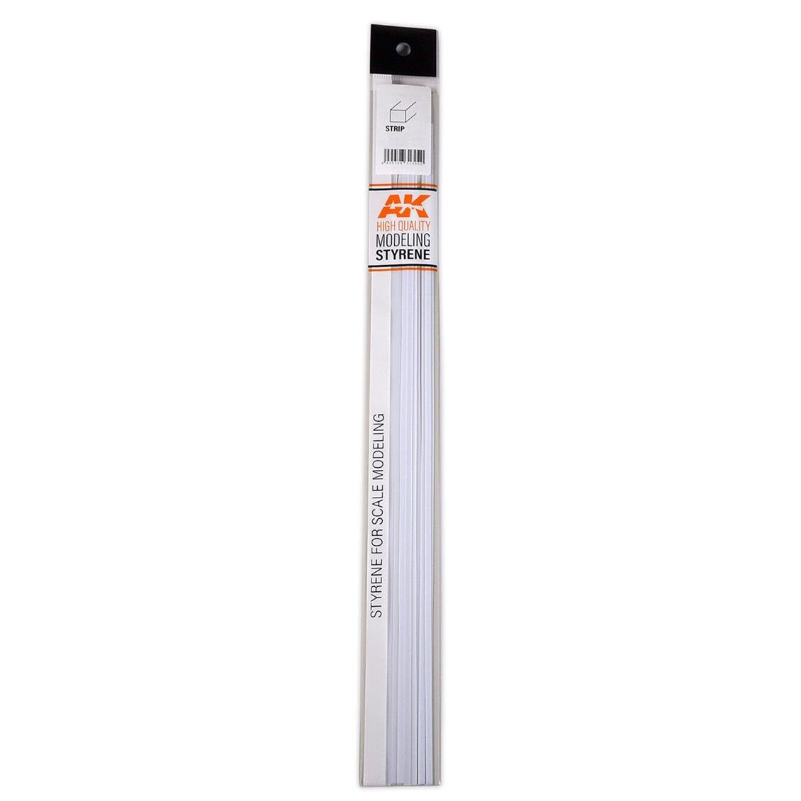 Ak Interactive 6525 1.50 x 2.00 x 350 mm. Plastic rod, 10 pieces, opaque white polystyrene strips.