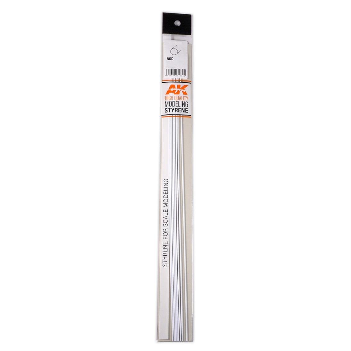 Ak Interactive 6541 3.00 x 350 mm. Plastic round rod, 10 opaque white polystyrene strips.