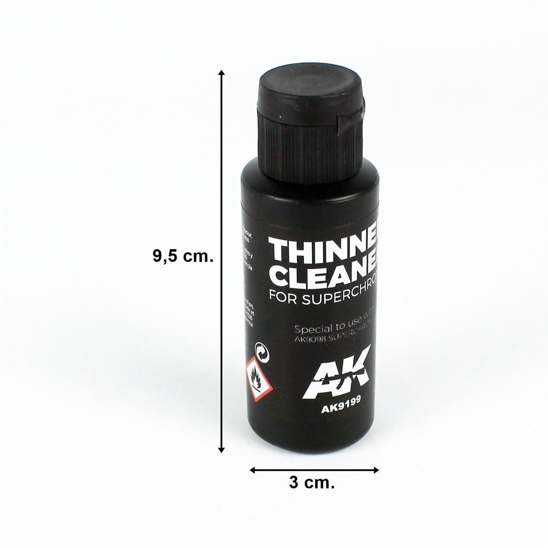 For super chrome, the thinner/cleaner is a special product for thinning the chromium paint when necessary, without losing the chrome properties or mirror effect.It also allows efficient cleaning of airbrush and brushes or desk.It comes in a 60 ml bottle with lid suitable for the dosage.