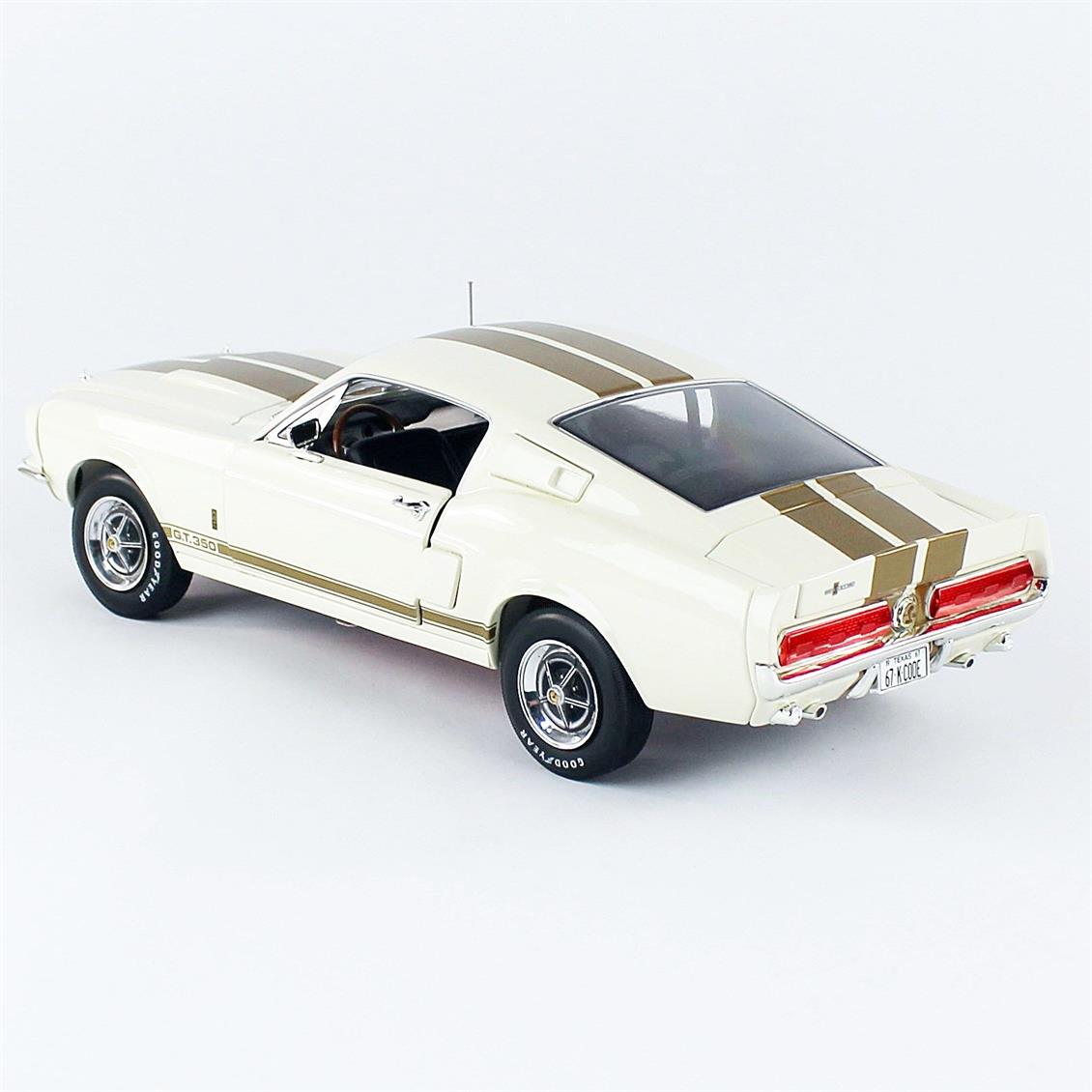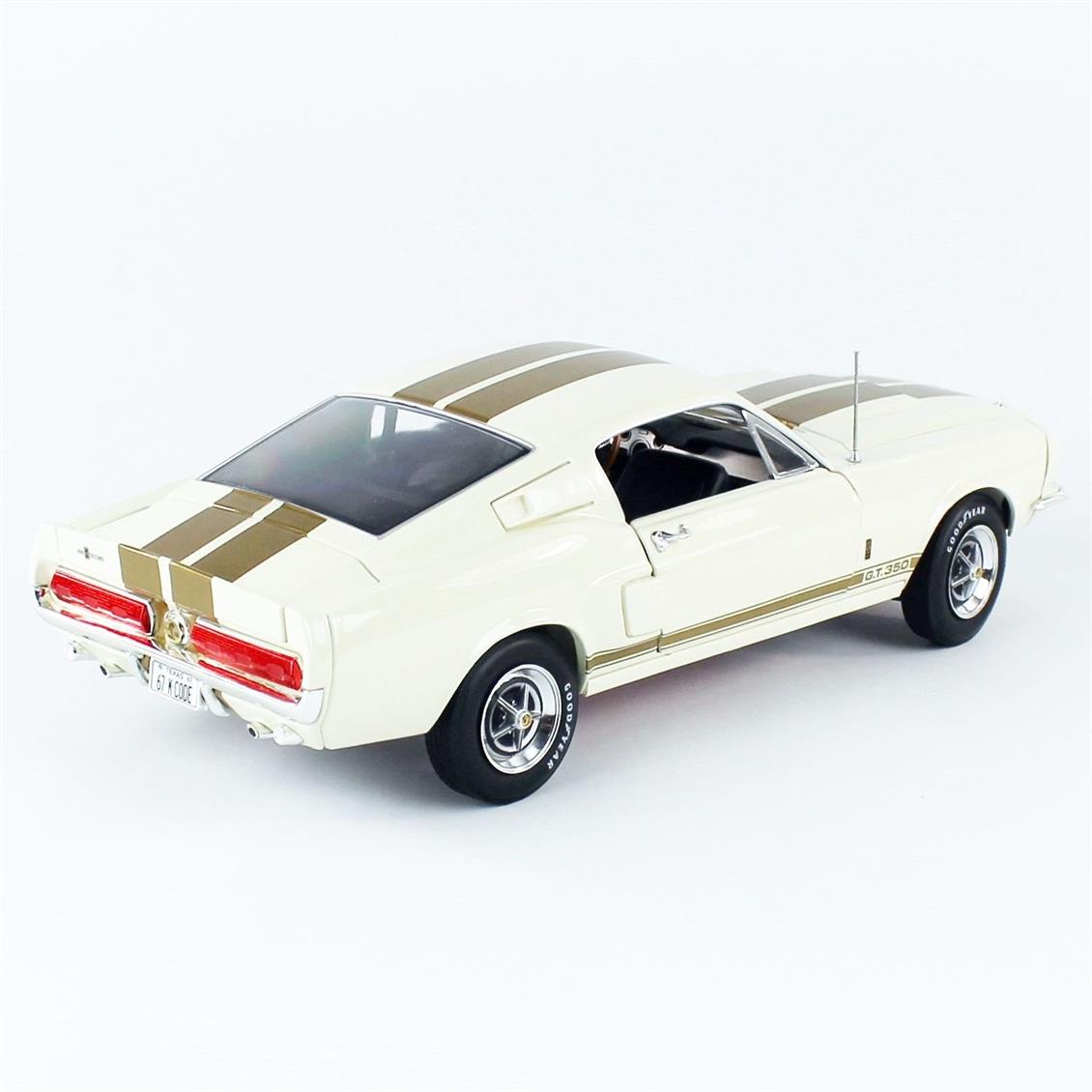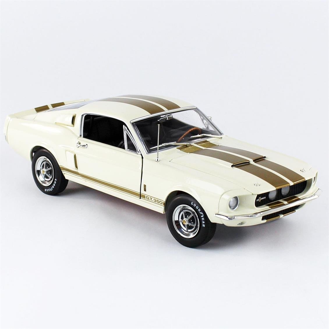 Carroll Shelby was hired by Ford to turn Mustang into a racing car between 1965-1969. In 1967, he gave Ford Mustang a great red design. Mustang "running horse" coat of arms, iconic spiral snake emblem was replaced and adorned the fuel lid, baggage, fenders, steering wheel and grill with pride. A new duck tail spoiler was added to the back, and the front end was extended and the vehicle was given a faster and more elegant look. Additional changes include air -cooled campaign rear brakes, a modified suspension for 30 %less cornering turn, quick -opened seat belts and optional double shoulder straps. At the same time, he introduced an integrated overturning bar, which has never been seen in stray cars with fixed ceilings. Under the hood, 306HP and 329 lb-ft torque value 289th V8 grumbled. A racing -oriented transmission, a powerful back differential, Limited numberReal rubber tiresReal -scale detailIt has a carpet -covered interiorIt has orientable wheelsHood and opening of the doorsOfficial licensed productMade of casting metal with some plastic piecesDetailed interior, outer, engine compartment