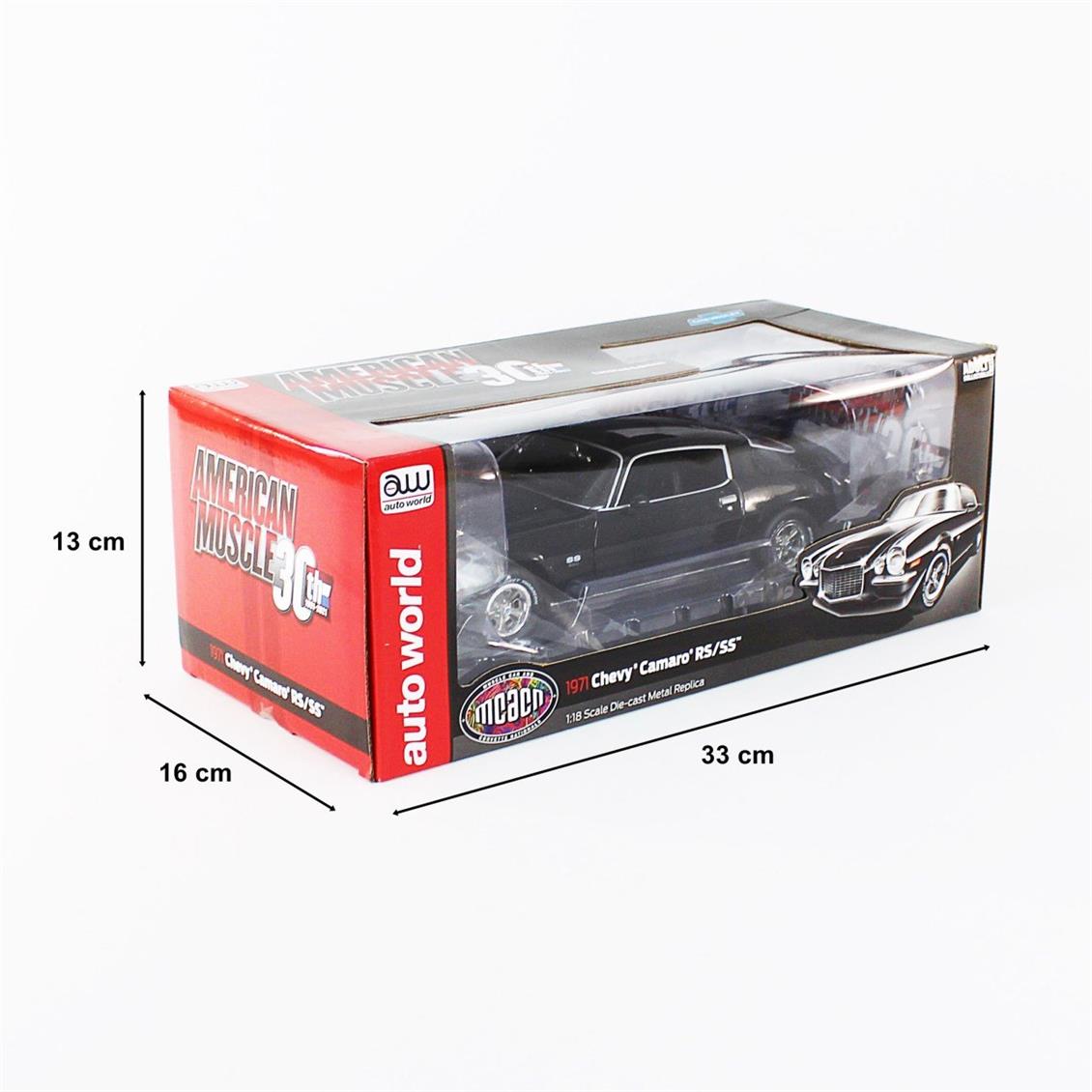 Autoworld AMM1250 1/18 1971 Chevy Camaro SS/RS (McACN & Class of 1971), TUXEDO Black, ready to exhibit metal car model