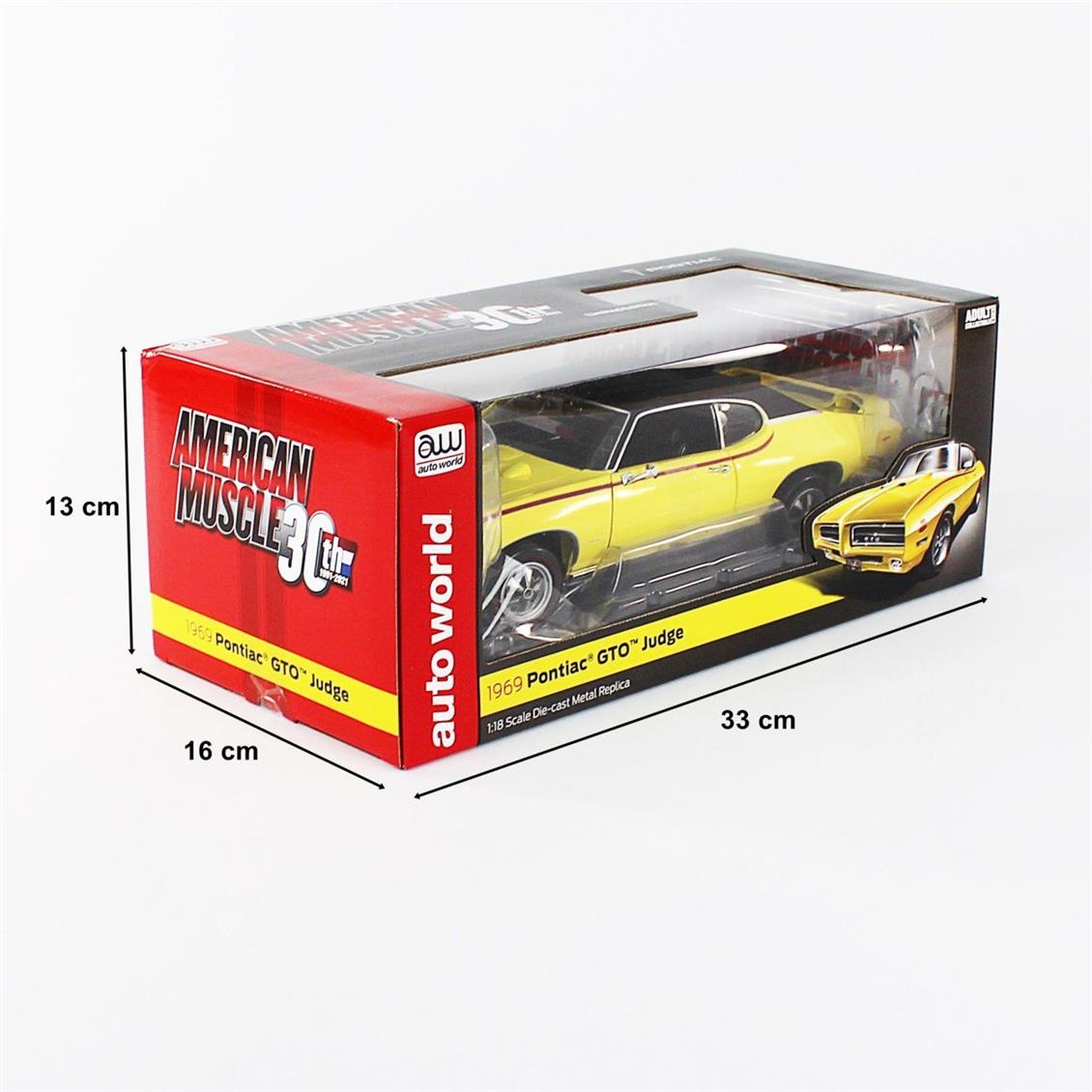 Autoworld AMM1252 1/18 1969 Pontiac GTO JUBGE, Goldenrod Yellow, ready to exhibit metal car model