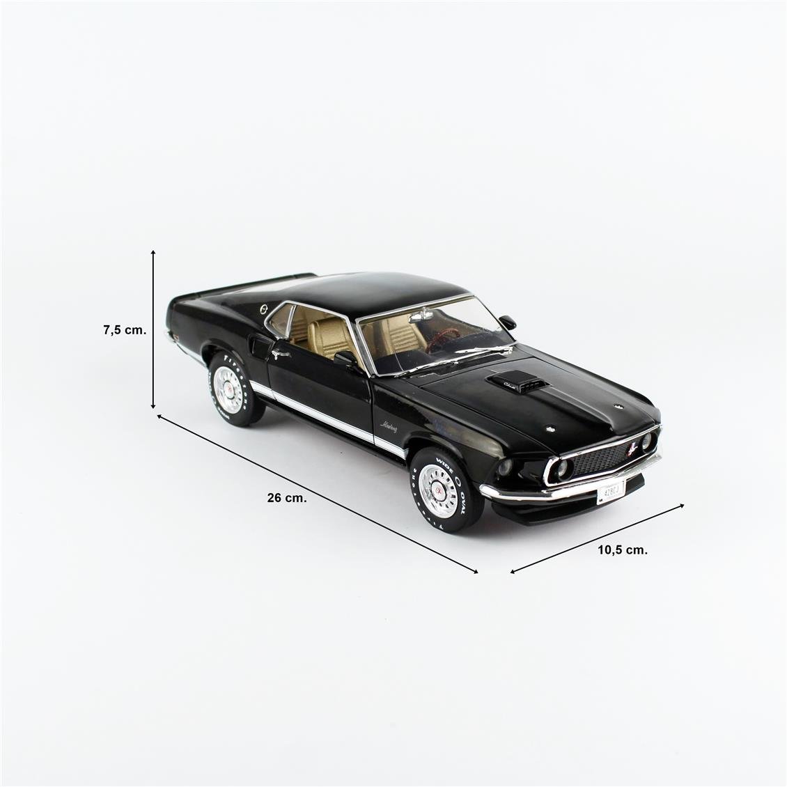 Autoworld AMM1292 1969 Mustang GT 2+2 Fastback (Raven Black) model successfully reflects both the classic Mustang design and the high -performance muscle car heritage. It is an excellent choice to exhibit detailed craftsmanship, opening gates, engine compartment and the details produced by being loyal to the original. Mustang's iconicness and elegance of Raven Black color make this model special for collectors. About 1969 Ford Mustang GT:Model: 1969 Ford Mustang GT is an important member of the Mustang family and is one of the iconic models of the muscle car. Fastback body structure strengthens the sporty and aggressive appearance of the vehicle, while performance -oriented engineering structure stands out.Motor: The 1969 Mustang GT is usually available with 351 CİT Windsor V8 engine. This engine produced approximately 290 horsepower and was an important element that added performance to the GT version. There were also 390 Cid and stronger 428 Cobra jet engine options.Design: 1969 Mustang GT is known for its long and wide body, iconic front grille and fastback design. The 2+2 fastback structure offers both a sporty appearance and more internal space. This model of Mustang is remarkable with aggressive headlights and side air intakes. Raven Black has a more elegant and hard appearance.Performance: Mustang GT had sports car performance not only with powerful engine options, but also with a balanced chassis and suspension system. As one of the most popular models of American muscle carts of the time, it was successful in both road performance and Drag races.