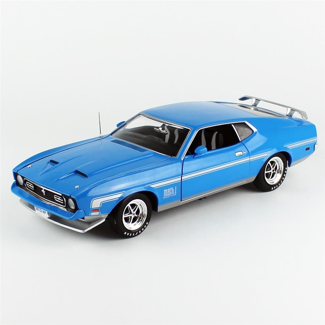 Autoworld AMM1314 1/18 Scale, 1972 Ford Mustang Mach 1, Grabber Blue, ready to exhibit metal car model