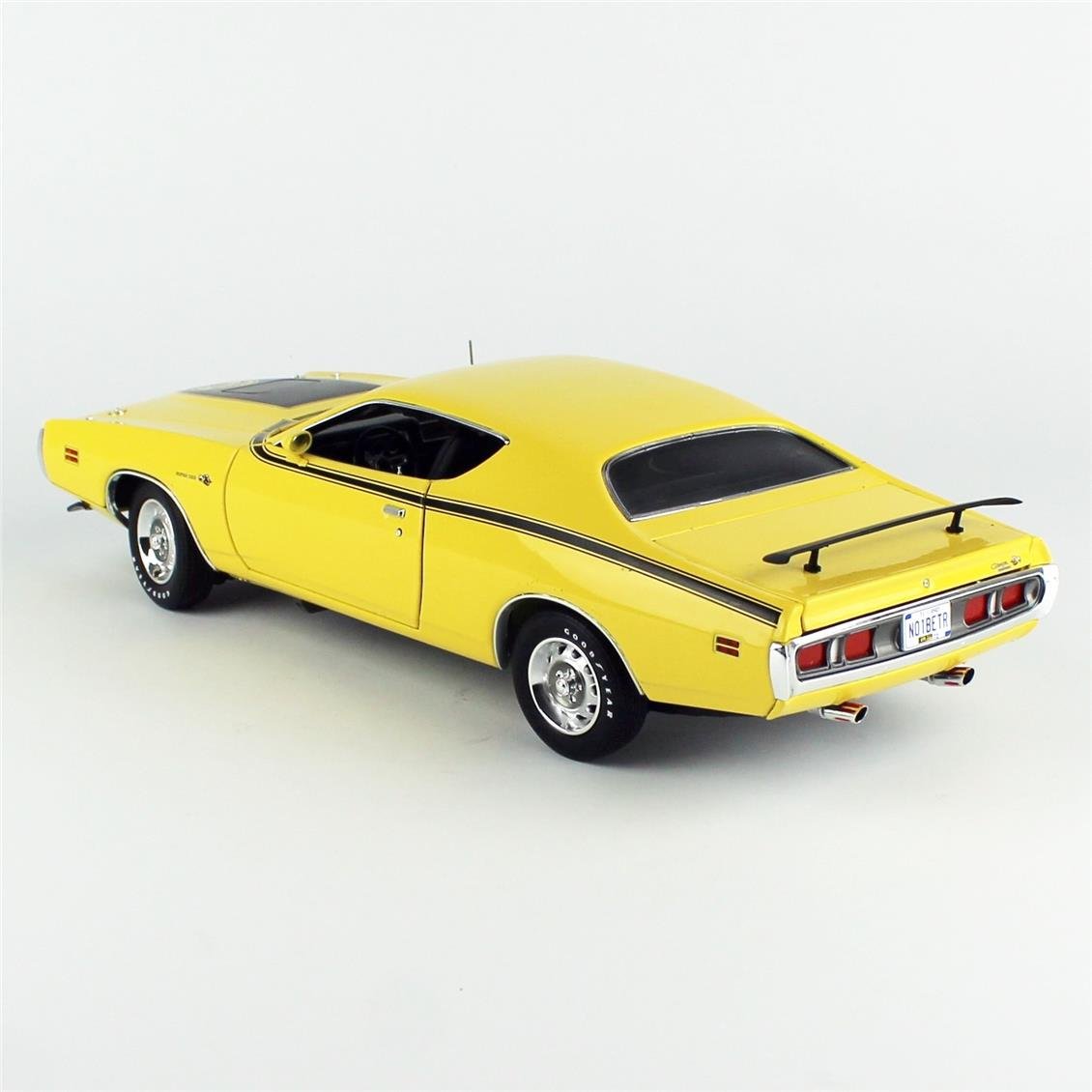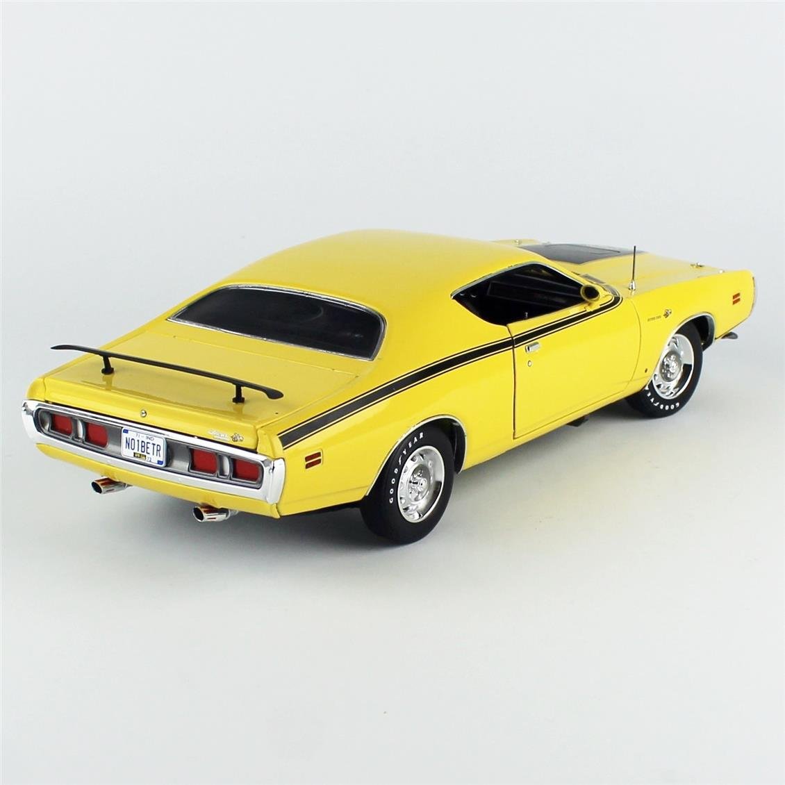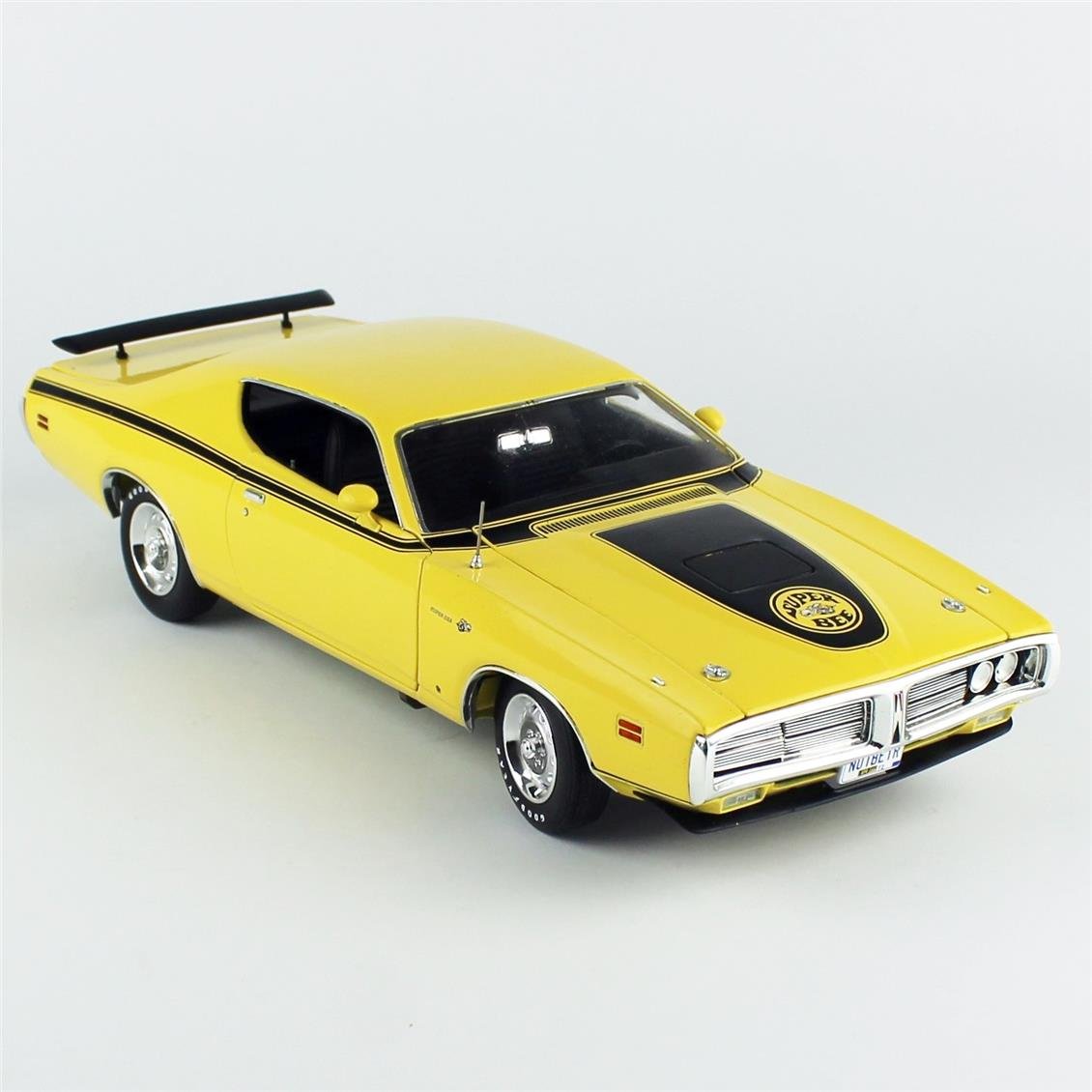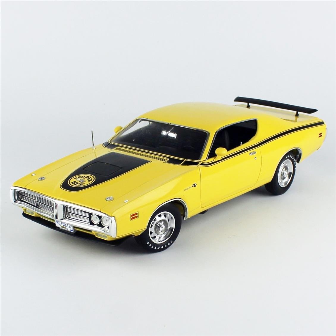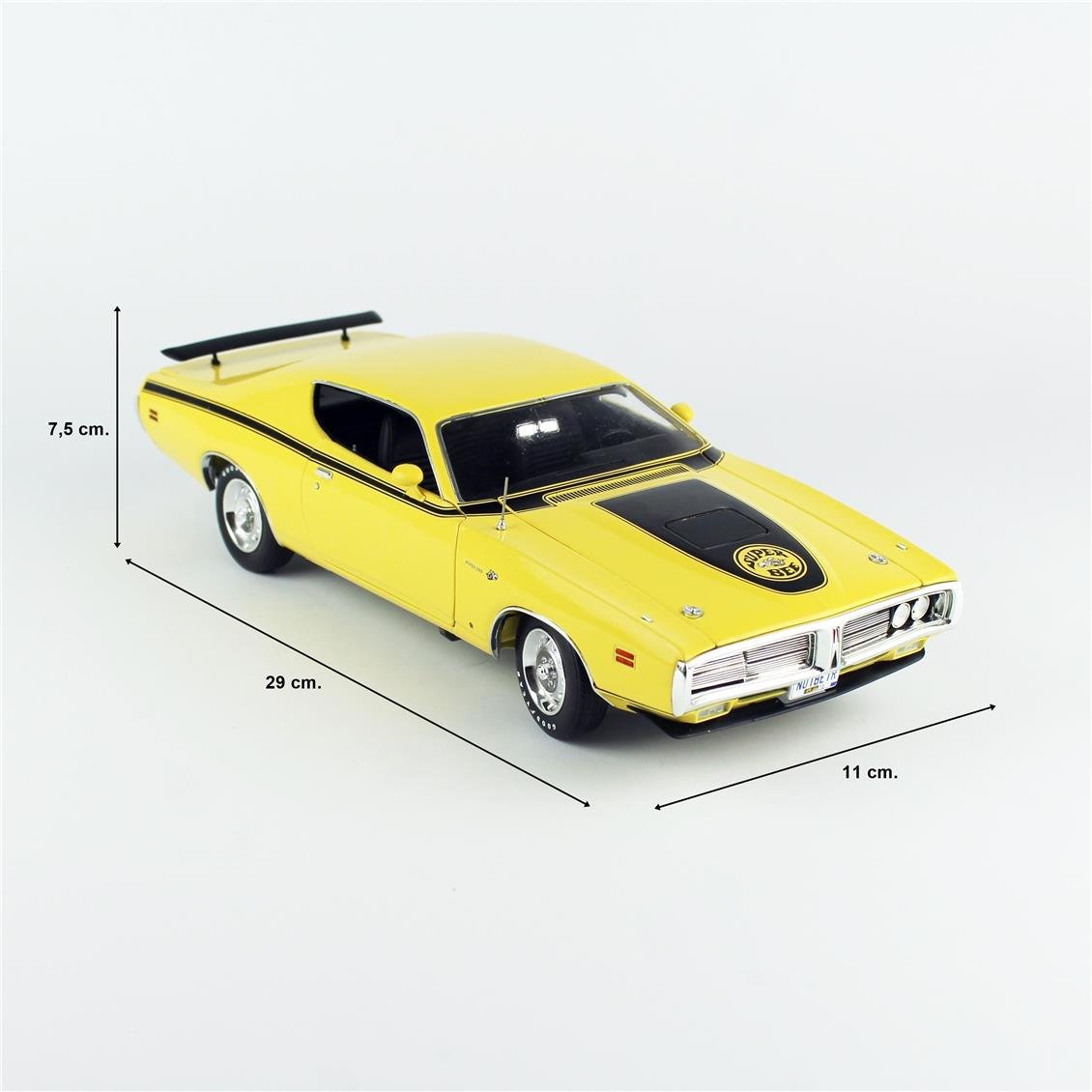 Autoworld AMM1315 1971 Dodge Charger Super Bee is a valuable collection piece for classic American performance car enthusiasts with both detailed workmanship and iconic design. With its remarkable color and powerful engine features, this model becomes an excellent option for both exhibiting and classic car enthusiasts. Bulk metal structure and opening capable lids improve the collection value and toy quality of this model. 1971 About Dodge Charger Super Bee:Model: Dodge Charger Super Bee is a iconic model produced between 1968-1971, a part of Chrysler's performance-oriented car series. Super Bee is a tool designed for speed and performance enthusiasts.Motor: 383 CİM or 440 SIDE V8 Motor: 1971 Dodge Charger Super Bee, 383 Cid (6.3 liters) or 440 Cid (7.2 liters) V8 engine options. These engines provide impressive performance by providing high horsepower and torque. Performance and strong torque offers an impressive driving experience.Design: Body Type: Four -door coupe design offers a sports and aerodynamic look. Color Options: Usually found in remarkable colors such as yellow or blue.External features: It attracts attention with curved lines, wide rear parts and aggressive front face.Performance: 1971 Dodge Charger Super Bee offers an impressive acceleration and driving dynamics thanks to its powerful engine and light structure. It is an ideal option especially for performance enthusiasts.Historical Context: Dodge Charger's History: Dodge Charger is a model produced since 1966 and has an important place in American automobile culture. The Super Bee version has been specially designed for performance enthusiasts and has gained popularity.