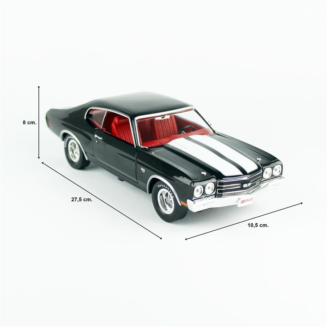 Autoworld AMM1317 1970 Chevrolet Chevelle Hardtop is a valuable collection piece for classic American car enthusiasts with both detailed workmanship and iconic design. With Hemings Muscle Machines version, this model brings together performance and style elements. Bulk metal structure and opening capable lids improve the collection value and toy quality of this model. Grabber becomes a visually impressive piece when it is displayed with its remarkable colors or similar colors. 1970 About Chevrolet Chevelle:Model: Chevrolet Chevelle is an American medium car produced between 1964-1977. 1970 is considered one of Chevelle's most iconic and popular models.Motor: 396 CİM or 454 SIDE V8 Motor: 1970 Chevrolet Chevelle, 396 Cid (6.5 liters) or 454 Cid (7.4 liters) V8 engine options. These engines provide impressive performance by providing high horsepower and torque. Performance and strong torque offers an impressive driving experience.Design:Body Type: Four -door hardtop design, sports and aerodynamic appearance.Color options: usually found in bright and remarkable colors, especially with the prominent colors in the version of Hemings Muscle Machines.External features: It attracts attention with curved lines, wide rear parts and aggressive front face.Performance: 1970 Chevrolet Chevelle attracts attention with its powerful engine and driving dynamics. His performance is satisfactory in terms of both speed and agility.Historical Context: Chevelle's History: Chevrolet Chevelle has gained an important place in the American automobile market in the late 1960s and early 1970s. The fact that it was included in the Muscle Car category has made it an attractive option for performance enthusiasts.
