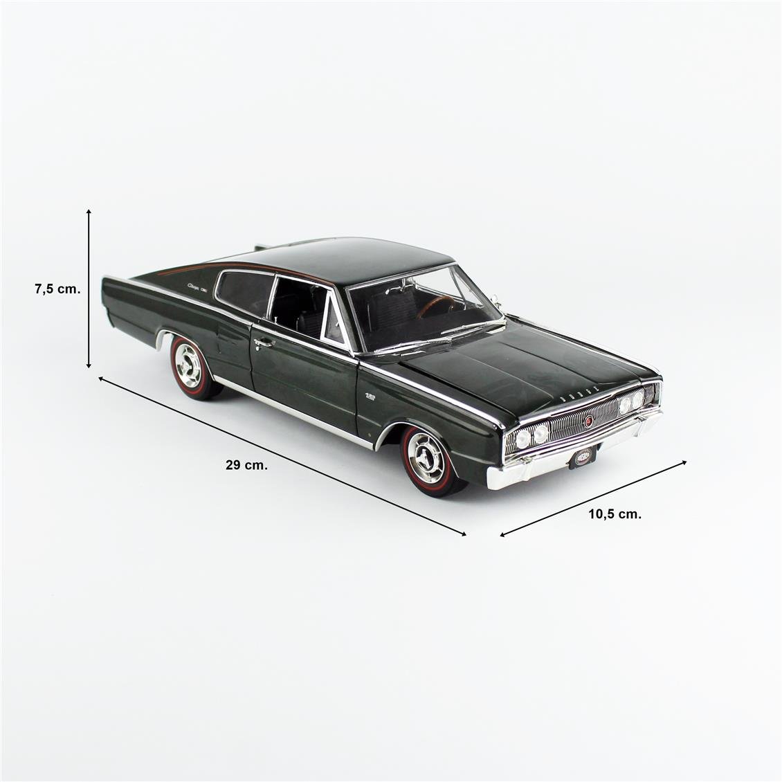 Autoworld AMM1320 1966 Dodge Charger Hardtop is a valuable piece of collection for classic American car enthusiasts with its detailed workmanship and iconic design. With its dark green color, an elegant appearance, this model with engine performance and aerodynamic design becomes an excellent option for both exhibition and classic car enthusiasts. Bulk metal structure and opening capable lids improve the collection value and toy quality of this model. About Dodge Charger 1966:Model: Dodge Charger is a model introduced in 1966 and becomes iconic among major performance cars. Charger has a design that offers both style and performance.Motor: 318 CİM or 383 SIDE V8 Motor: 1966 Dodge Charger, 318 Cid (5.2 liters) and 383 Cid (6.3 liters) engine options. The 318 engine offers an ideal performance for daily driving, while 383 engines are more suitable for drivers looking for higher horsepower. Strong motor structure increases driving experience. Design: Body Type: Four -door hardtop design offers a sporty and aerodynamic look. Color Options: GG1 Dark Green gives the vehicle an elegant and remarkable look. External features: Curved lines, large rear parts and an aggressive front face attracts attention.Performance: 1966 Dodge Charger offers an impressive acceleration and driving dynamics thanks to its powerful engine and aerodynamic design. It provides a pleasant driving experience both in the city and on the highway.Historical Context: Dodge Charger's History: Dodge Charger has gained an important place in the American automobile market since 1966. The fact that it was included in the Muscle Car category has made it an attractive option for performance enthusiasts.