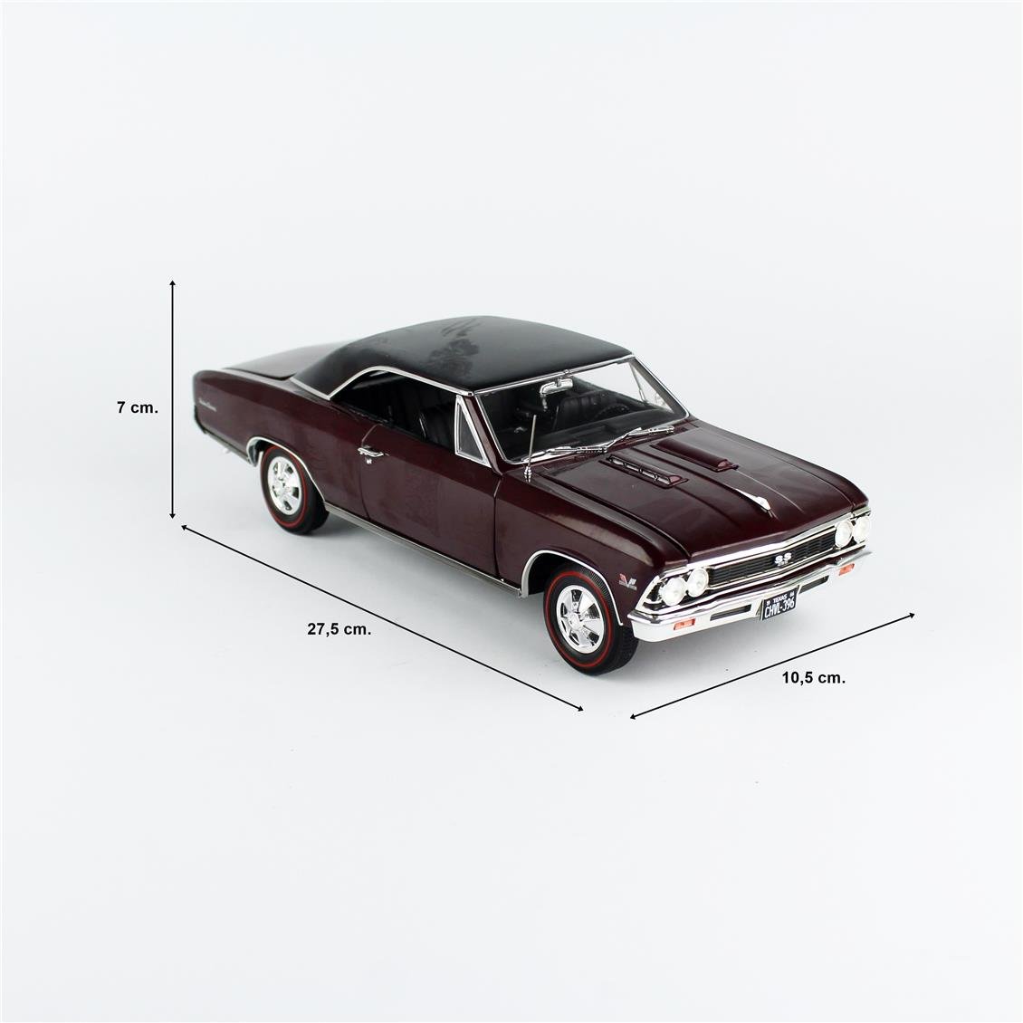 Autoworld AMM1343 1966 Chevrolet Chevelle SS396 is a valuable collection piece for classic American car enthusiasts with its detailed workmanship and iconic design. With engine performance and elegant design, this model becomes an excellent option for both exhibition and classic car enthusiasts. Bulk metal structure and opening capable lids improve the collection value and toy quality of this model. About the 1966 Chevrolet Chevelle SS396:Model: Chevrolet Chevelle is a medium-sized car series produced between 1964-1977. 1966 is one of the most popular years of the Chevelle series.Motor: 396 SIDE V8 Motor: 1966 The Chevelle SS396 is equipped with 396 SIDE V8 engine options, one of Chevrolet's high -performance engines. This engine offers 360 horsepower and is known for its impressive acceleration ability. The engine can perform 0-60 MPH acceleration below 6 seconds.Design: Body Type: It is offered with four -door hardtop or two -door coupe options, offering a classic and elegant look. External features: AGRESSE LINES, WIDE BACK PARTS AND STATECTIVE FINAL DEPARTMENT.Performance: 1966 Chevrolet Chevelle SS396 offers an impressive acceleration and driving dynamics thanks to its light structure and powerful engine. It provides a pleasant driving experience both in the city and on the highway.Historical Context: The History of Chevelle: Chevelle is an important part of American Muscle Car culture. The year 1966 was a great year of development for Chevelle and attracted attention with its performance features. The SS (Super Sport) version has increased the performance and luxury of this model.
