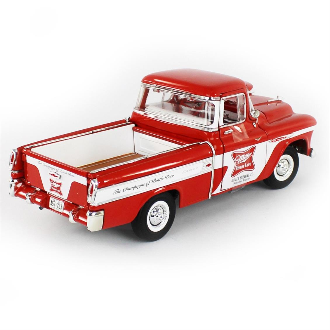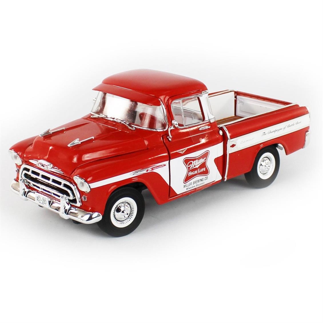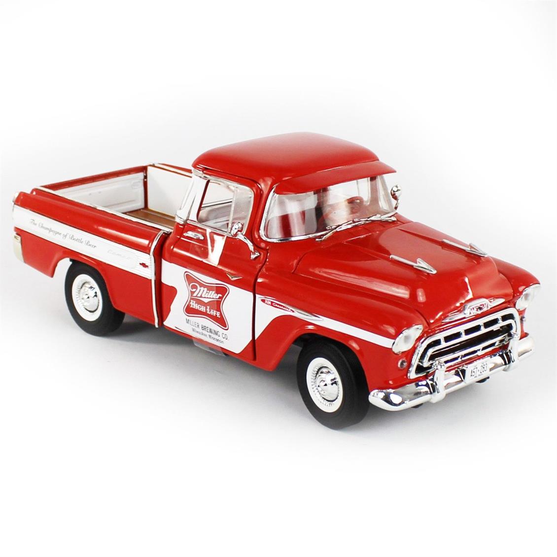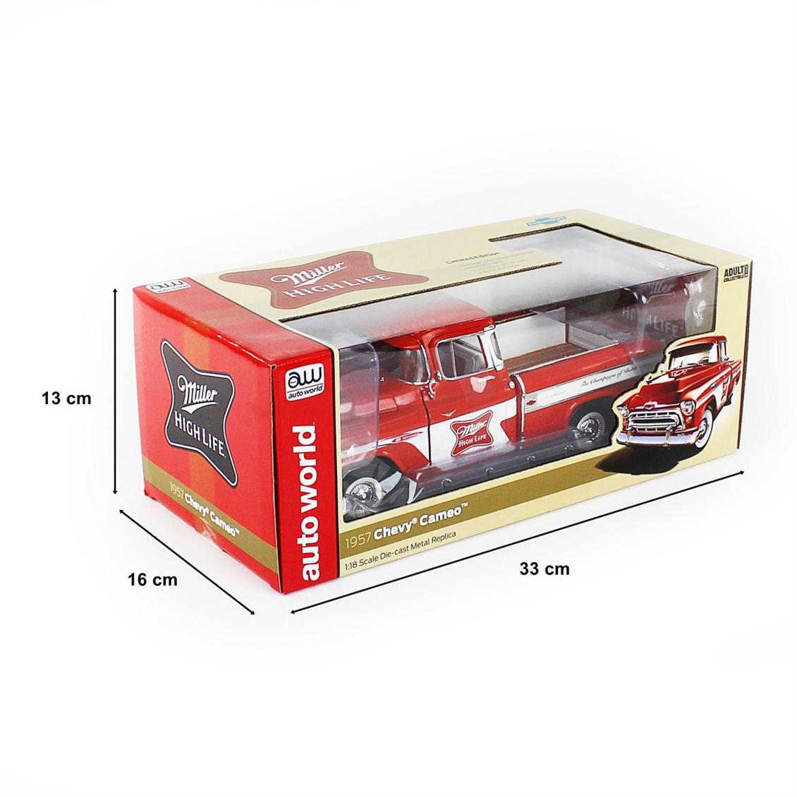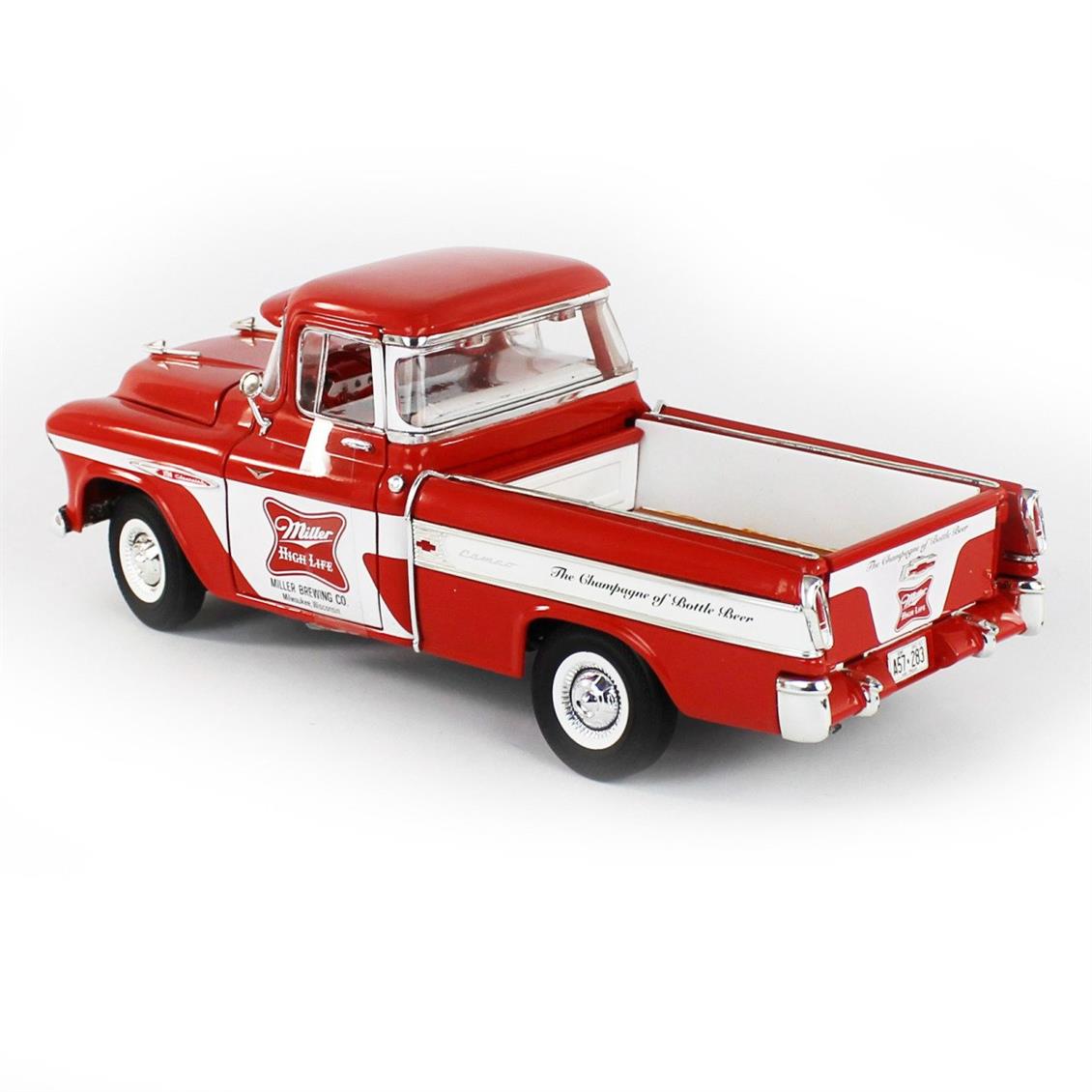 Autoworld AW287 1/18 1957 Chevy Cameo Pickup / Miller High Life, Red & White, Ready to Exhibit Metal Car Model