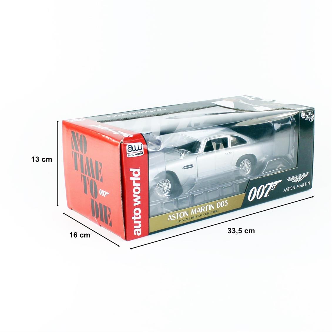 Autoworld AWSS131 1/18 1965 James Bond Aston Martin No Time to Die, Silver, Metal Car Model Ready to Exhibit