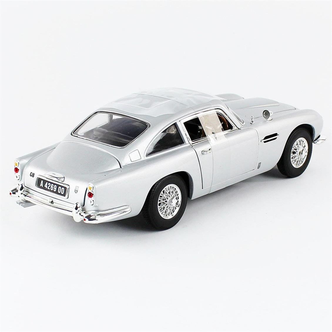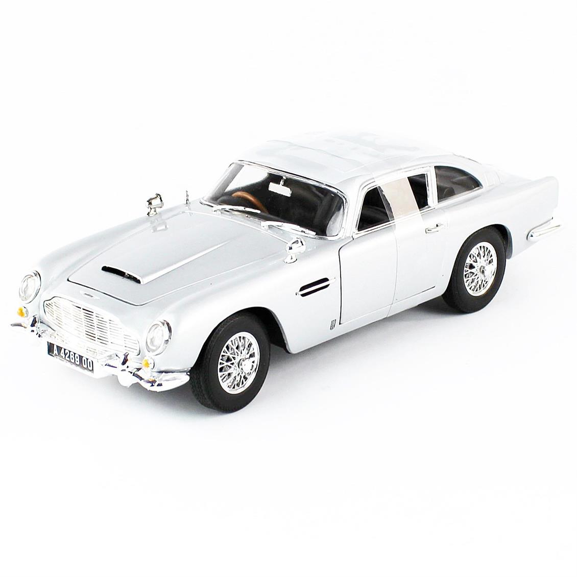 For both children and collectors, you cannot beat Auto World's legendary film car! This 1965 Aston Martin DB5 Coupe RHD (right from the right), 1/18 scale model replica. It is in silver color and has the opens hood, the doors and luggage, the directed front wheels, the right inner and chassis, the removable upper part, the heavy casting metal, the detailed motor. Any movie is a great piece for a car collection and a hot James Bond 007 "There is no time to die" lovers! Real rubber tires.Redurable wheels.There is a removable upper part.Official licensed product.Right to internal and chassis.Hood, doors and opening of the baggage.It is made of casting with some plastic pieces.Detailed interior, outer, engine compartment.