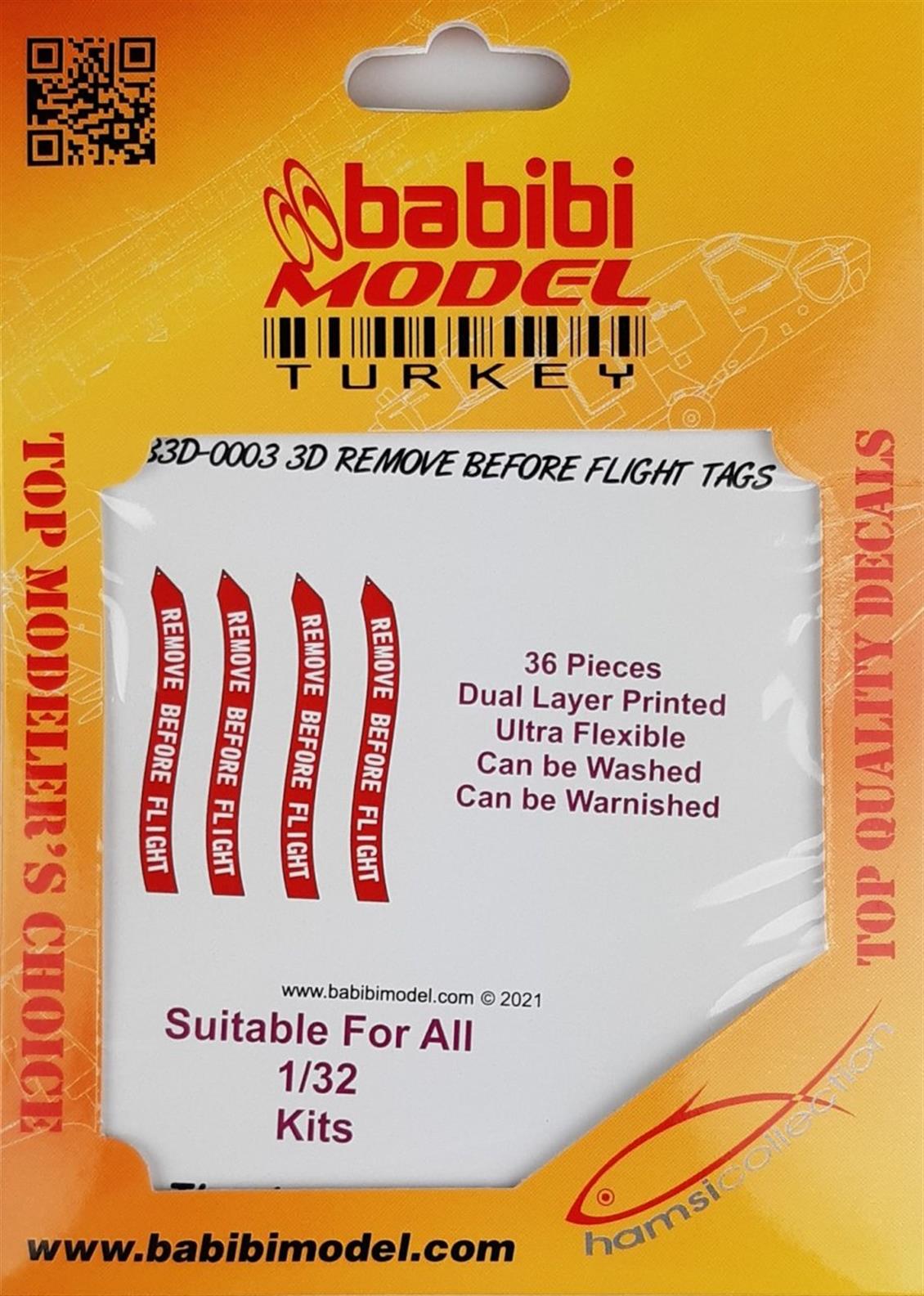 Babibi B3D-0003 1/32 Remove Flight Tags-3 Dimensional Decal