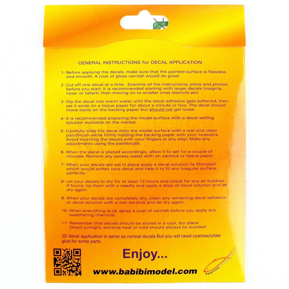 Babibibi, who has produced plastic model kits for many years, has now produced the best 3D decals with its innovative staff. The company, which thinks to the finest detail of the aircraft models we make, produces its decals in the same quality. In fact, if you look at the company, there is not much information about the internet world. However, their stickers reveal their stickers.