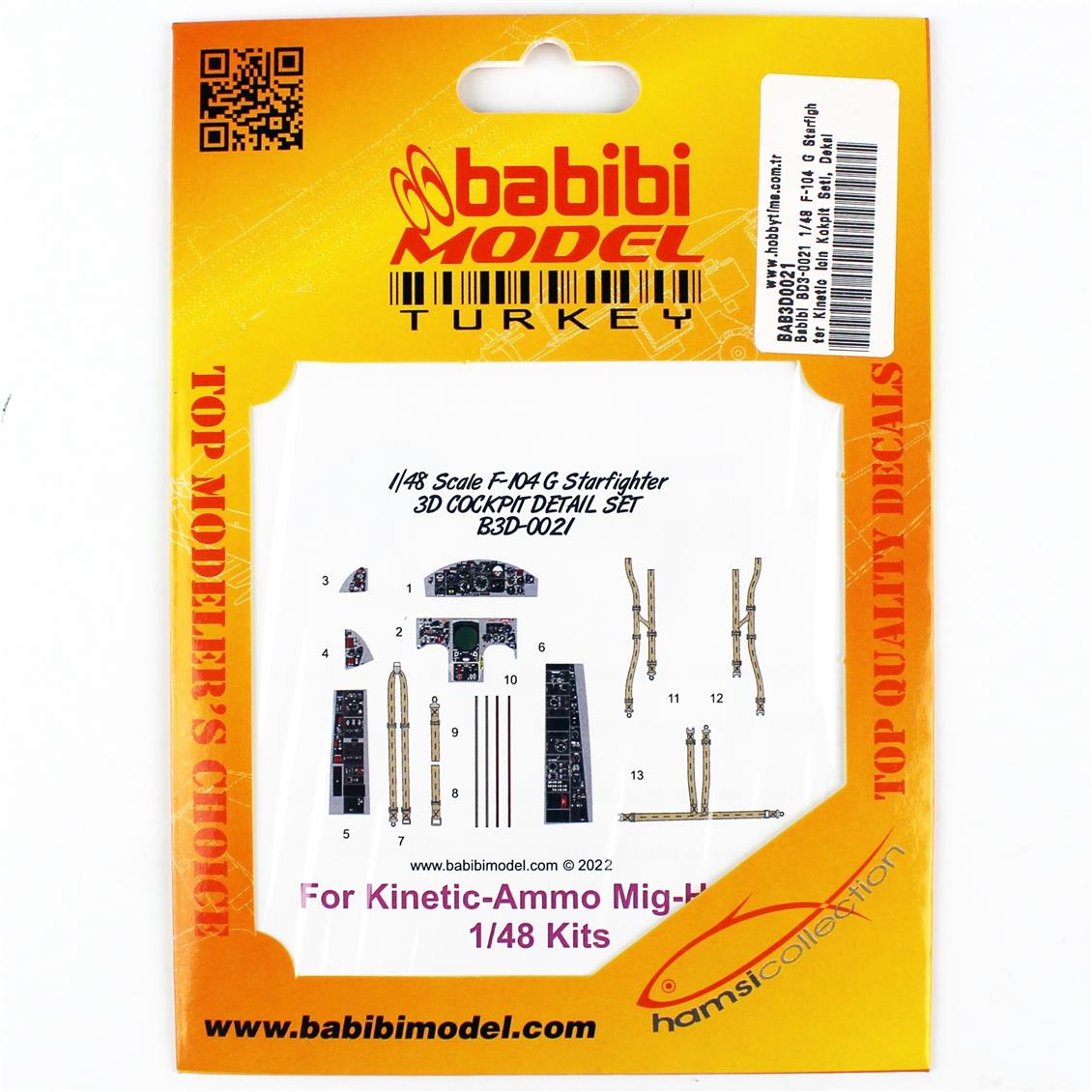 Babibi BD3-0021 1/48 F-104 g Starfighter Kokpit set for kinetic, Dekal Lickening