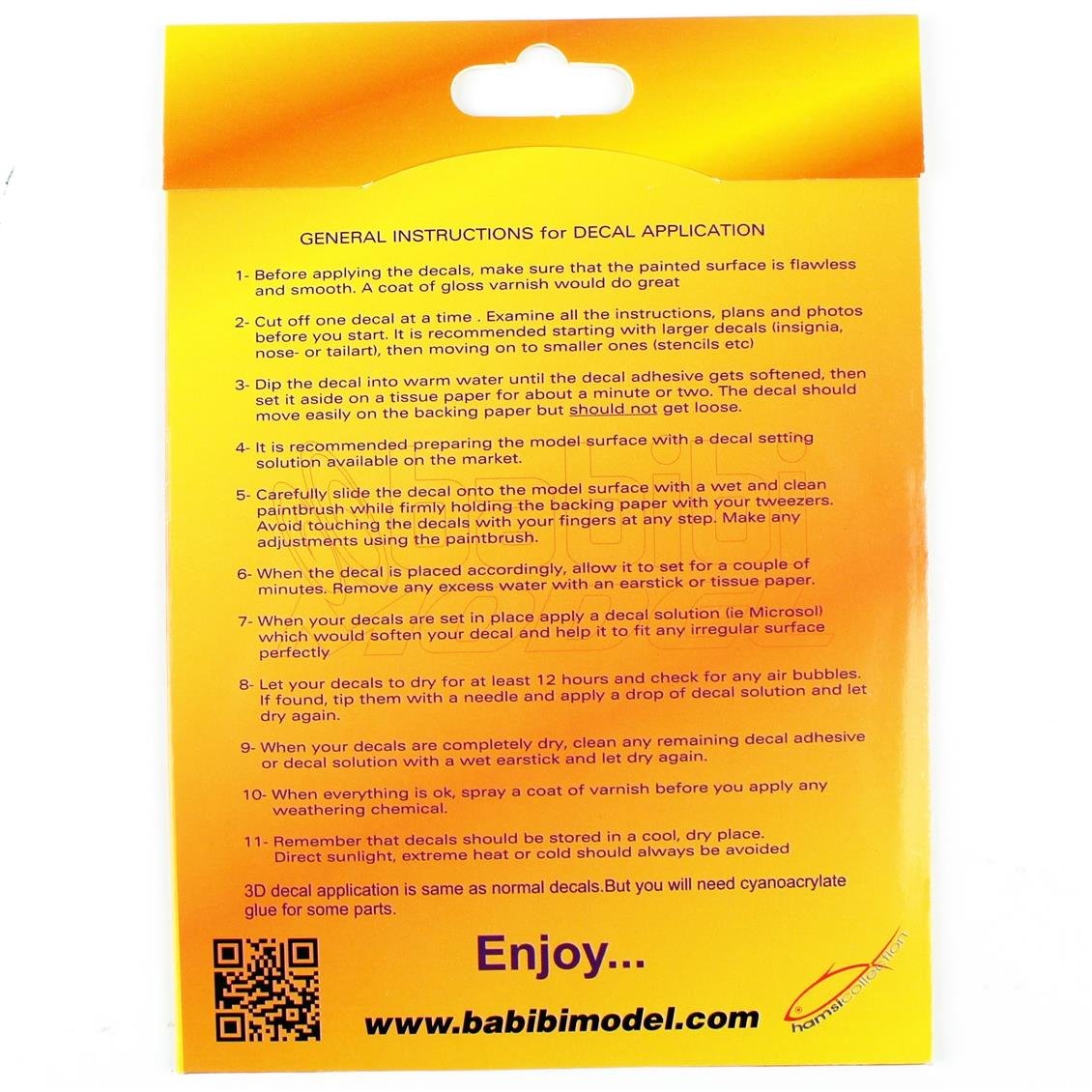 Babibibi, who has produced plastic model kits for many years, has now produced the best 3D decals with its innovative staff. The company, which thinks to the finest detail of the aircraft models we make, produces its decals in the same quality. In fact, if you look at the company, there is not much information about the internet world. However, their stickers reveal their stickers.
