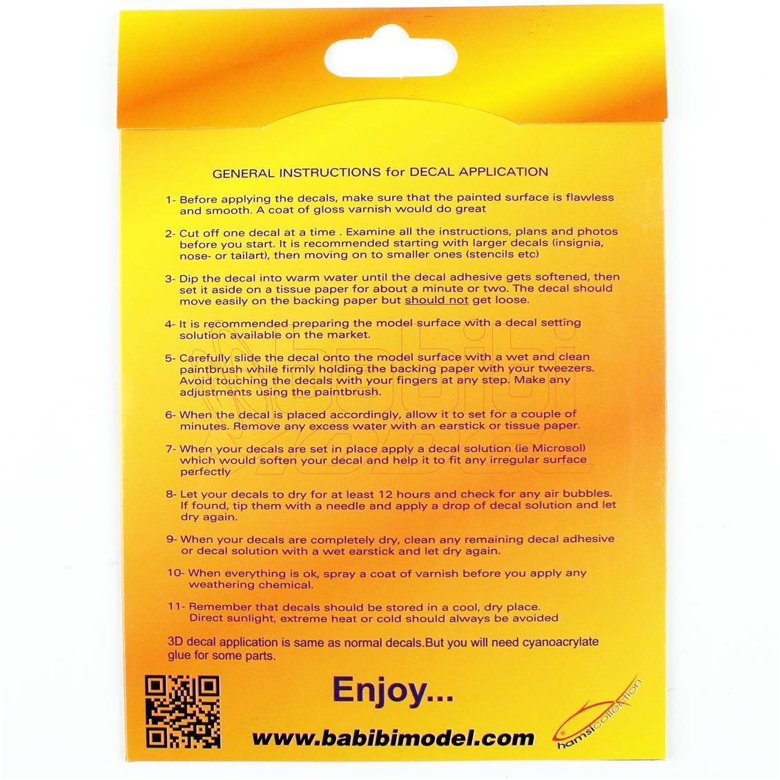 Babibibi, who has produced plastic model kits for many years, has now produced the best 3D decals with its innovative staff. The company, which thinks to the finest detail of the aircraft models we make, produces its decals in the same quality. In fact, if you look at the company, there is not much information about the internet world. However, their stickers reveal their stickers.