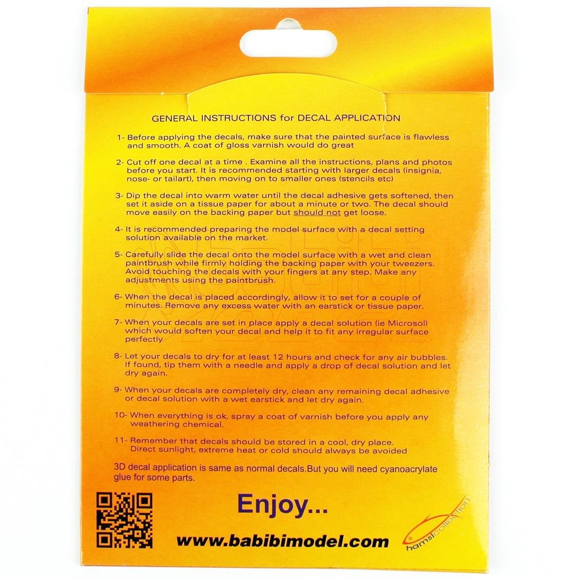 Babibibi, who has produced plastic model kits for many years, has now produced the best 3D decals with its innovative staff. The company, which thinks to the finest detail of the aircraft models we make, produces its decals in the same quality. In fact, if you look at the company, there is not much information about the internet world. However, their stickers reveal their stickers.