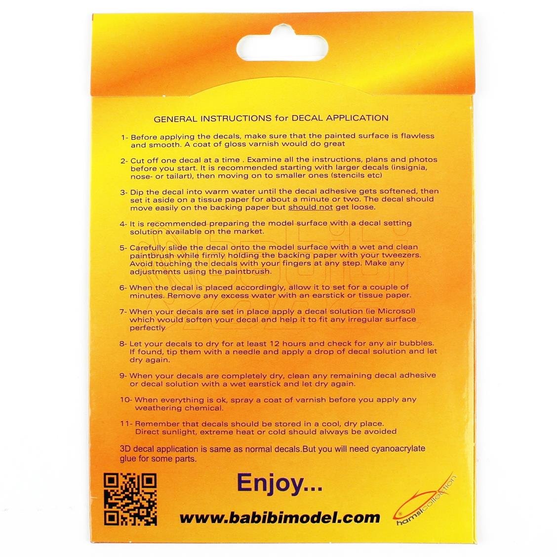 Babibibi, who has produced plastic model kits for many years, has now produced the best 3D decals with its innovative staff. The company, which thinks to the finest detail of the aircraft models we make, produces its decals in the same quality. In fact, if you look at the company, there is not much information about the internet world. However, their stickers reveal their stickers.
