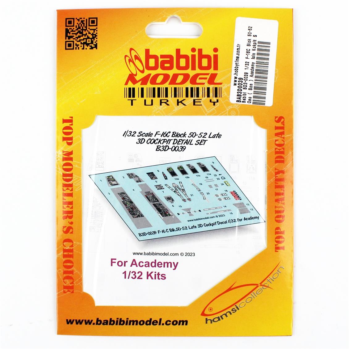 Babibi BD3-0039 1/32 F-16C Block 50-52 Late (End) Cockpit set for Academy, Dekal Declaration