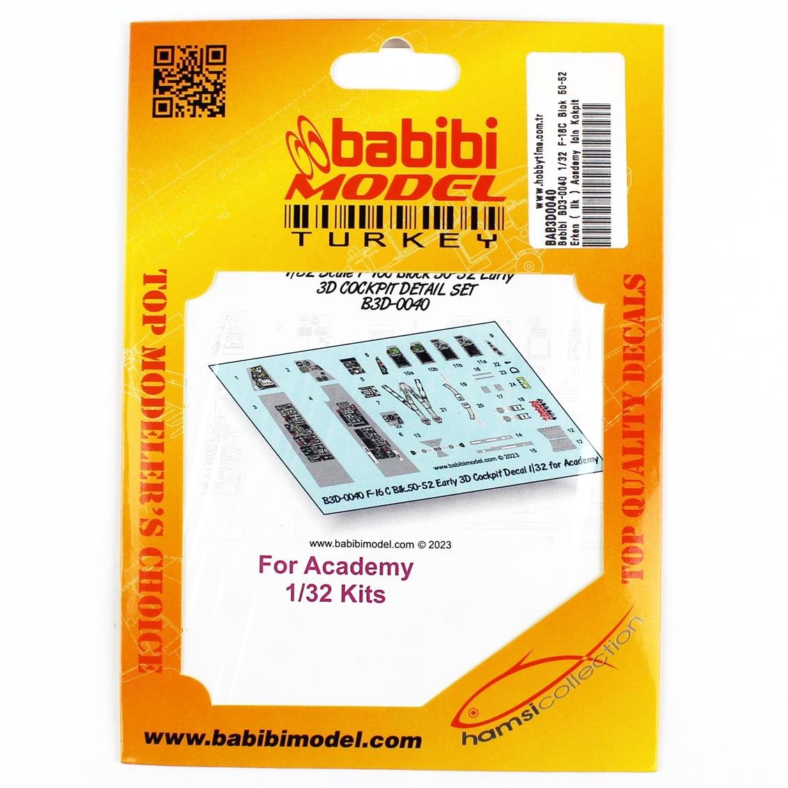 Babibi BD3-0040 1/32 F-16C Block 50-52 Early (First) Cockpit Set for Academy, Dekal Declaration