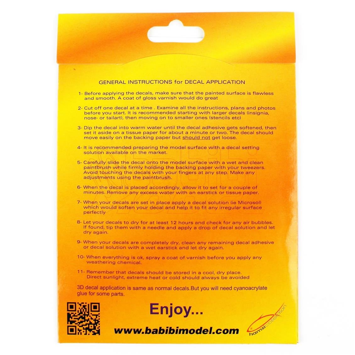 Babibibi, who has produced plastic model kits for many years, has now produced the best 3D decals with its innovative staff. The company, which thinks to the finest detail of the aircraft models we make, produces its decals in the same quality. In fact, if you look at the company, there is not much information about the internet world. However, their stickers reveal their stickers.