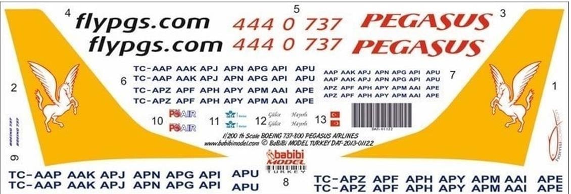 Babibi DAT01122 1/200 Scale, Pegasus, Boeing 737-800, Decal Decal (BADAT01122)
