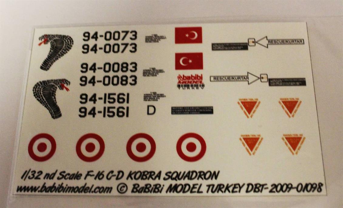 Babibi DBT01098 1/32 TURAF F-16 C/D 191. Cobra Fleet Decal Lickening
