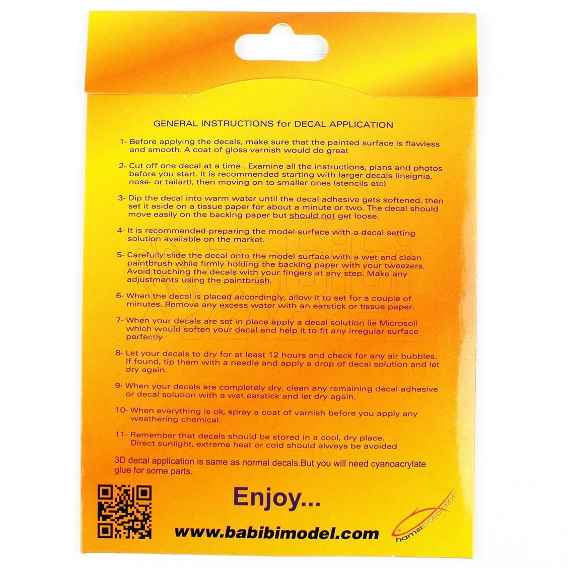 Babibibi, who has produced plastic model kits for many years, has now produced the best 3D decals with its innovative staff. The company, which thinks to the finest detail of the aircraft models we make, produces its decals in the same quality. In fact, if you look at the company, there is not much information about the internet world. However, their stickers reveal their stickers.