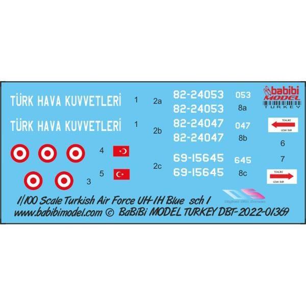 Babibi DBT-01369 1/100 UH-1H Iraq Turkish Air Force Blue Camouflage, Dekal Declaration